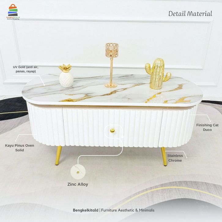 Meja Ruang Tamu Minimalis Aesthetic Kekinian Motif Marmer