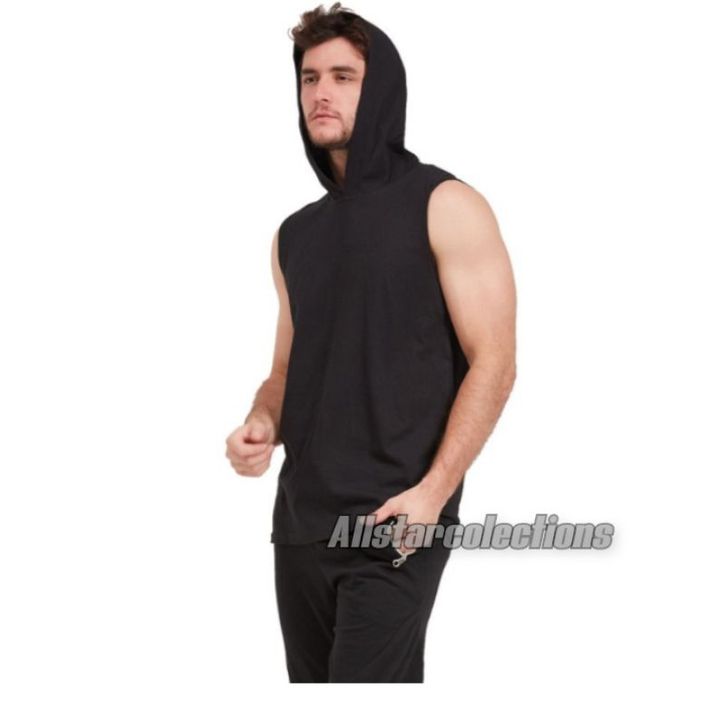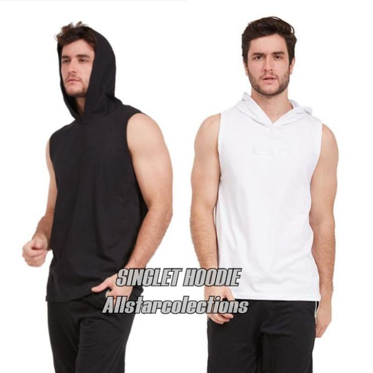Singlet Pria adem Hoodie Sleeveless Cowok Kaos Singlet Kupluk Gym Olahraga Tangan Pria Singlet Manset Tanpa Lengan Polos