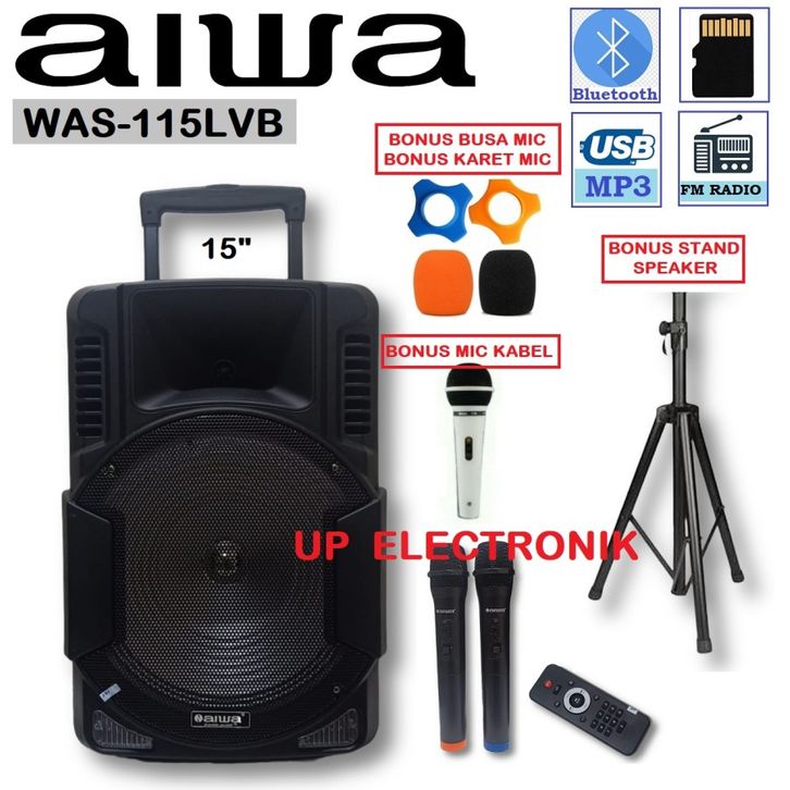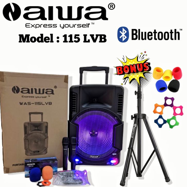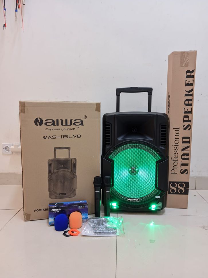 Speaker Portable 15 Inch Aiwa WAS-115LVB USB MP3 BLUETOOTH With 2 Mic Wireless