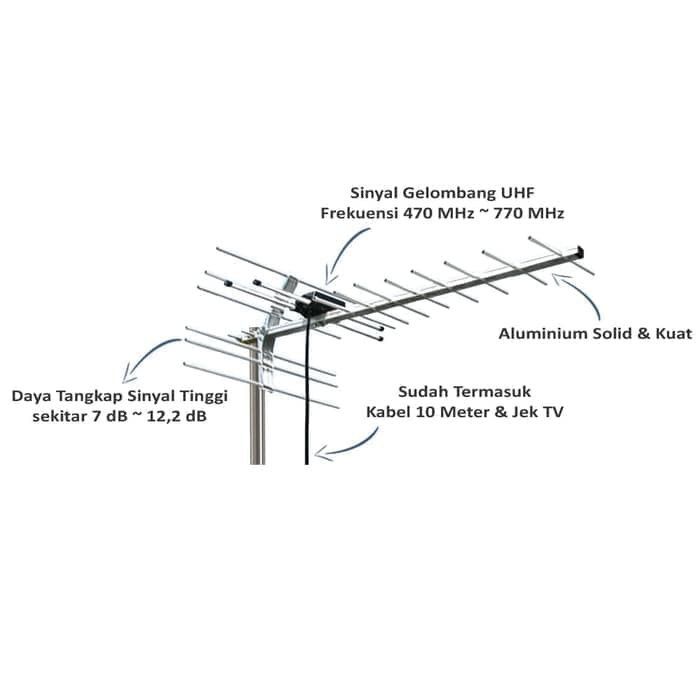 ANTENA TV PF HD12 HD-12 DIGITAL OUTDOOR ANTENA LUAR FREE KABEL 10 METER