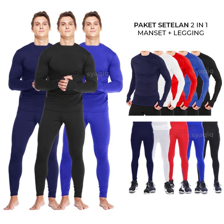 one set Baju Manset Baselayer Pria Celana Panjang Legging Sport Olahraga Sepakbola Futsal One Set Lengan Panjang adem
