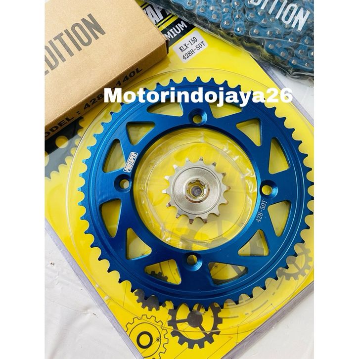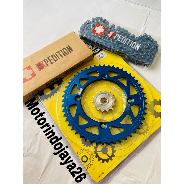 GEAR SET KLX 150 D TRACKER 150 PROTAPER BIRU SET RANTAI EXPEDITION SUPERMOTO TRABAS HARIAN