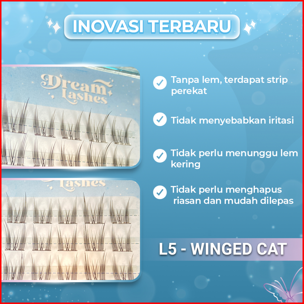 Langsung Nempel 3 Detik Dream Lashes L5 Winged Cat Look Eye Cat Bulu Mata Palsu Premium Tanpa Lem Eyelash Extension Eyel