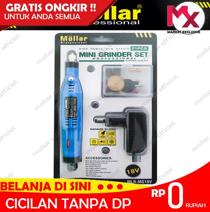 [ PROMO CICILAN ] MOLLAR MG18V MINI GRINDER SET 21 PCS BOR GERINDA TUNER 18V BLISTER