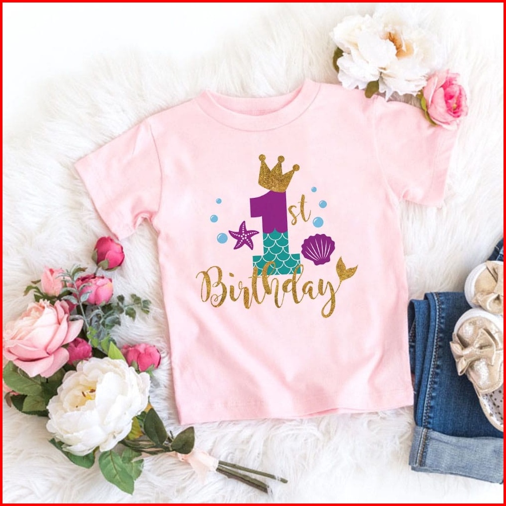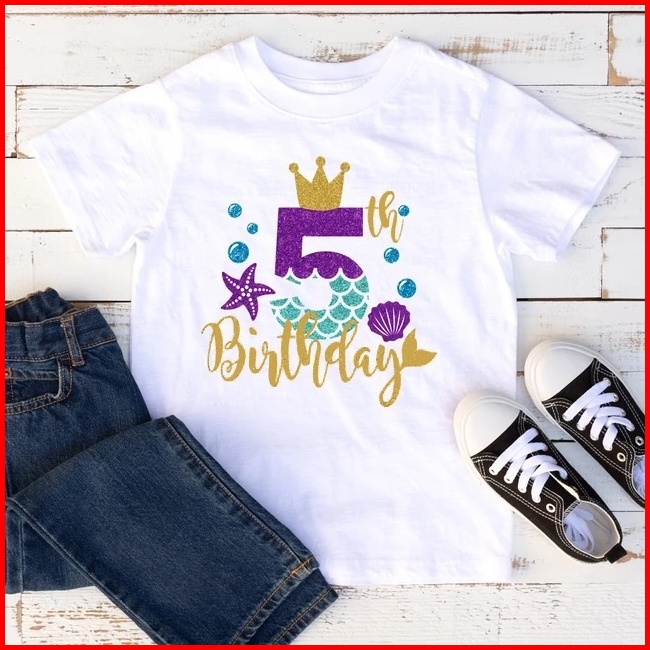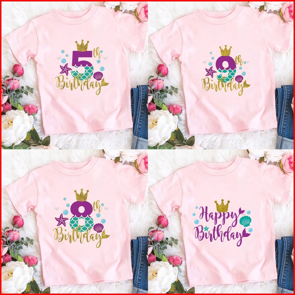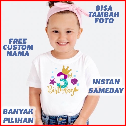 Mystique.id - Kaos Mermaid Duyung Ulang Tahun Lucu Bisa Custom Nama Dan Angka Lucu
