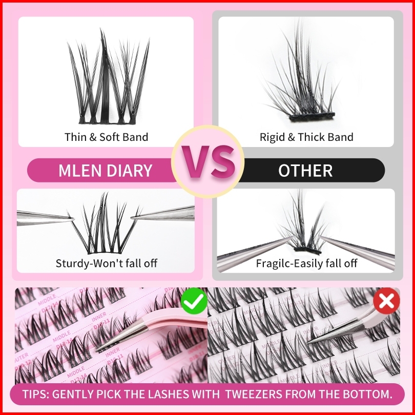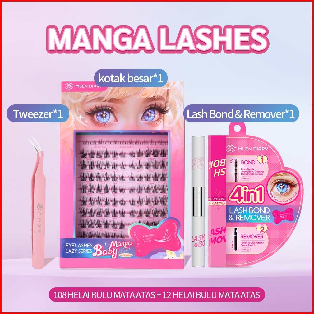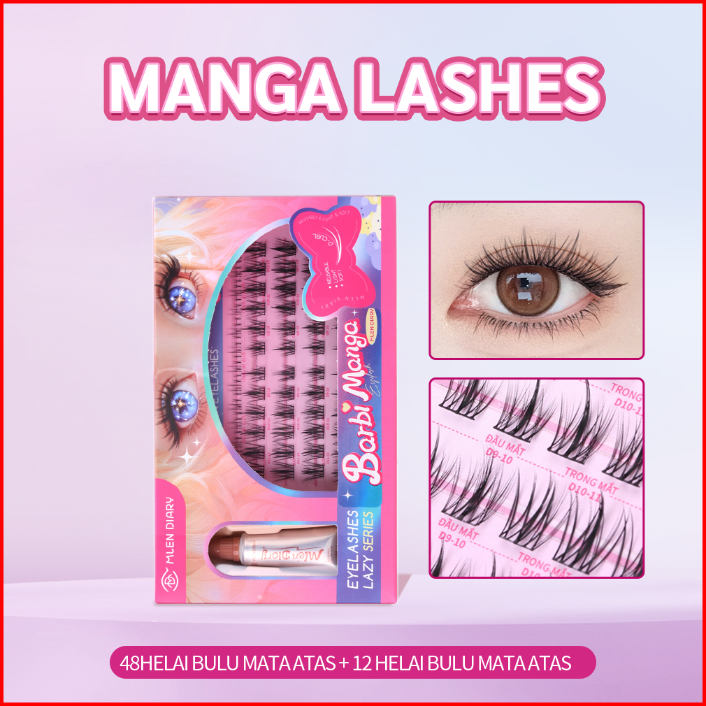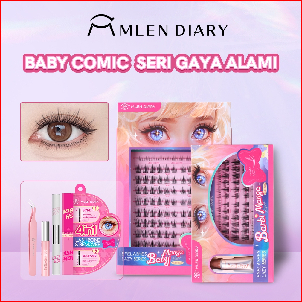 Mlen Diary Baby Manga Seri Gaya Alami Bulu Mata Palsu Mata D Eyelash Curl Wispy Panjang 9-14mm Natural Bulu Mata Eyelash
