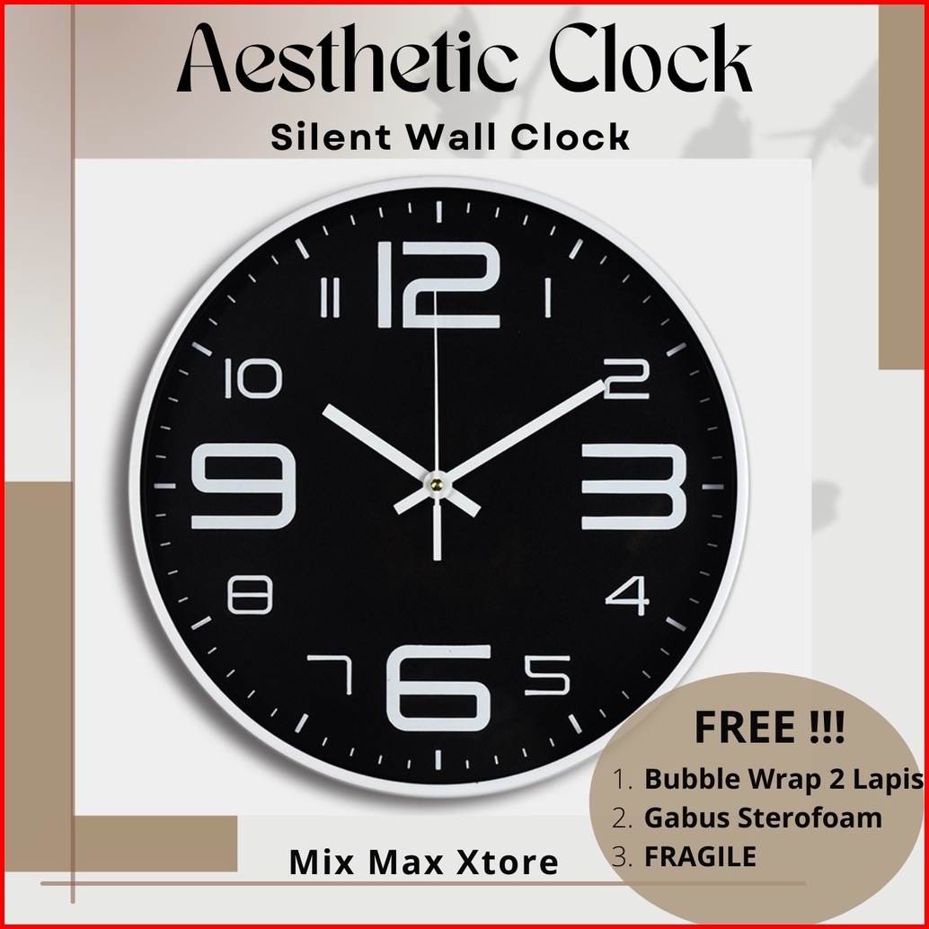 Jam Dinding Bulat Desain Estetik 30cm - Black Jam Dinding Aesthetic Jam Dinding Besar