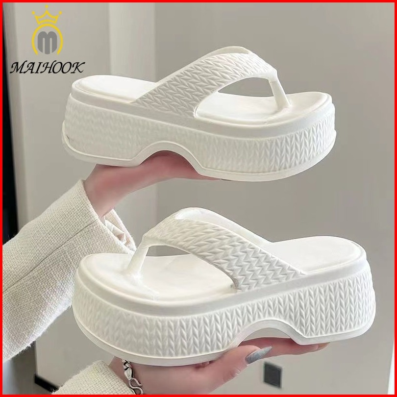 Maihook Sandal Wanita Jelly Wedges Sandal Jepit Tebal Eva Rubber Premium Wedges Wanita Kekinian Korea Terbaru Rumah Jibb