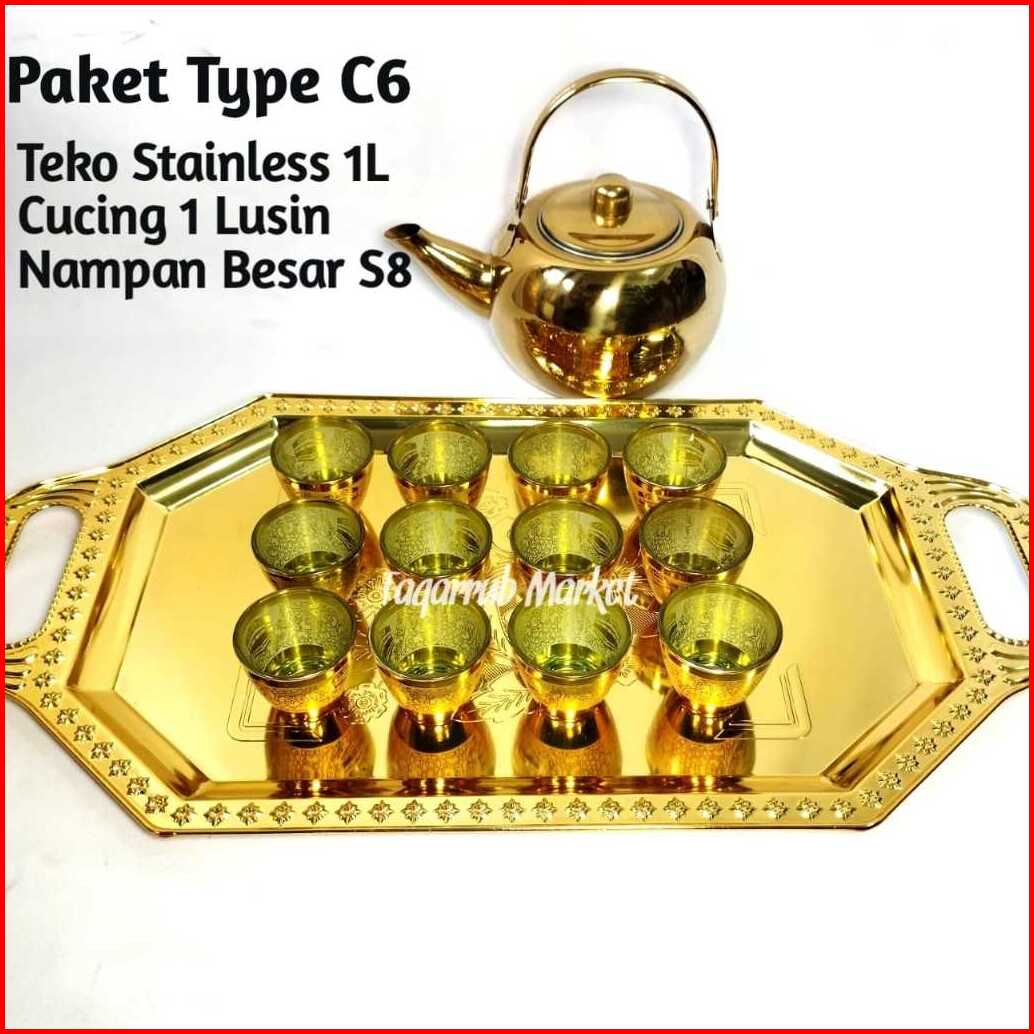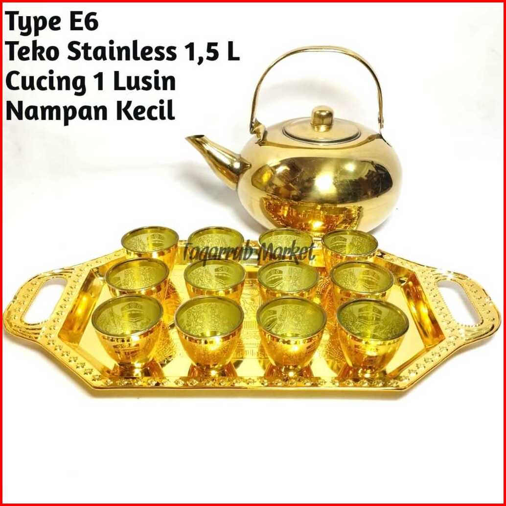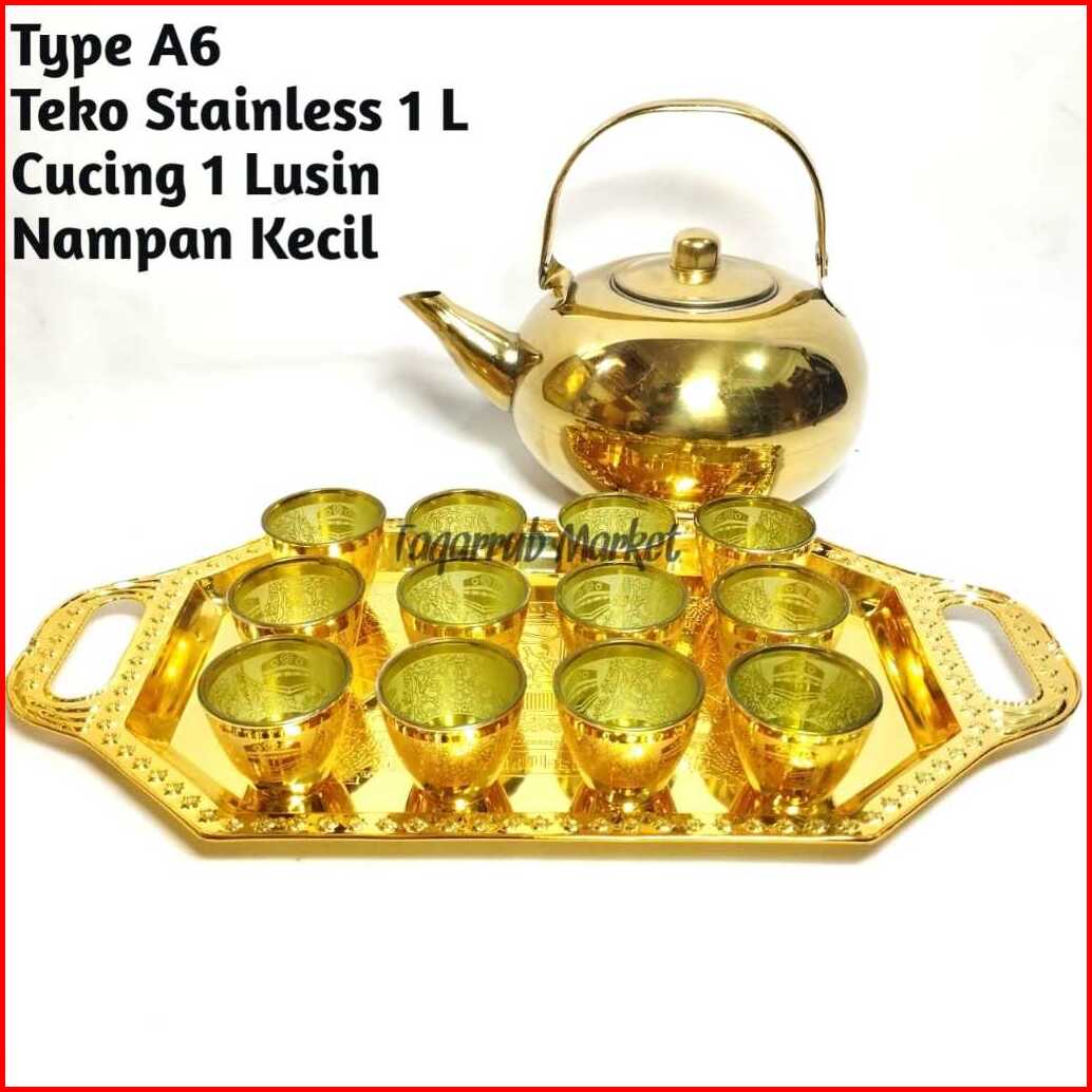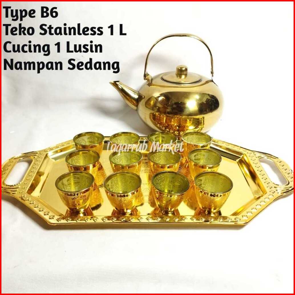 Paket Teko Stainless Cucing Nampan Paket Teko Nampan Gelas Air Zam Zam Souvenir Oleh Oleh Haji Umrah Umroh Gelas Zamzam