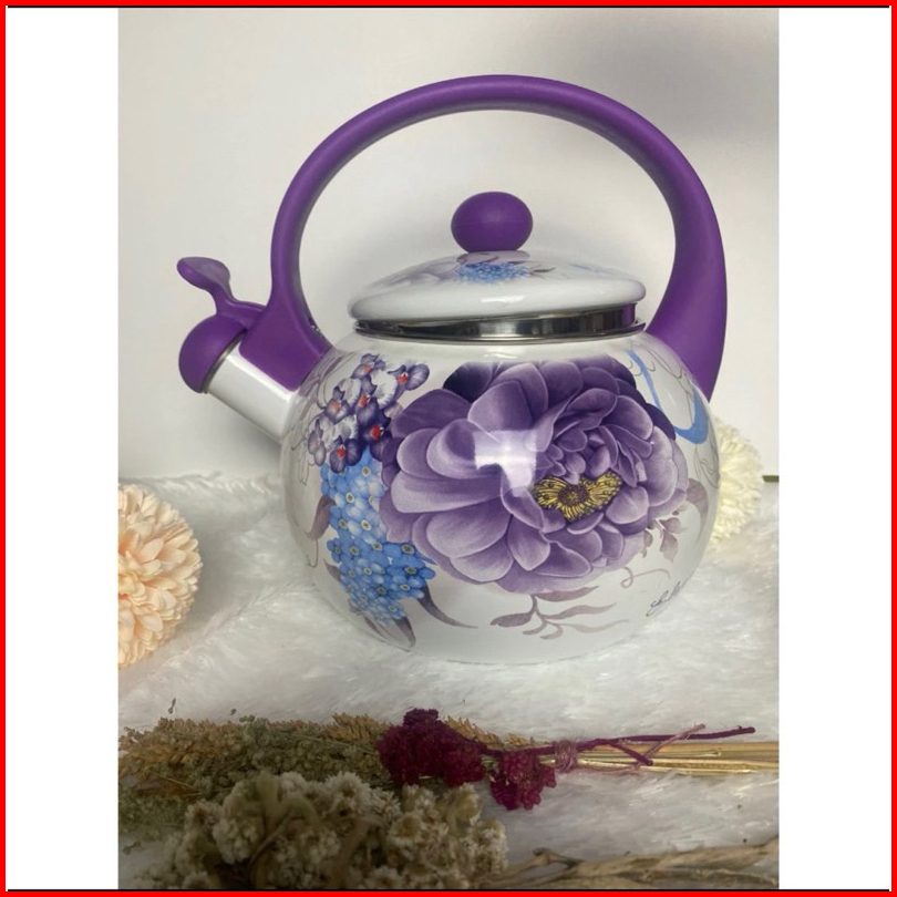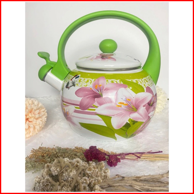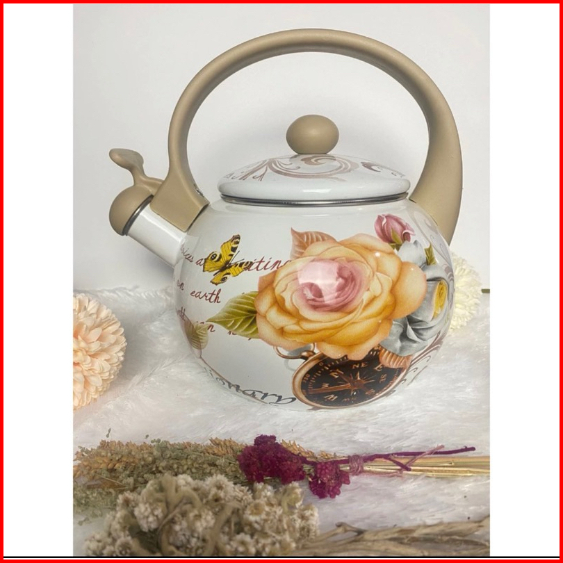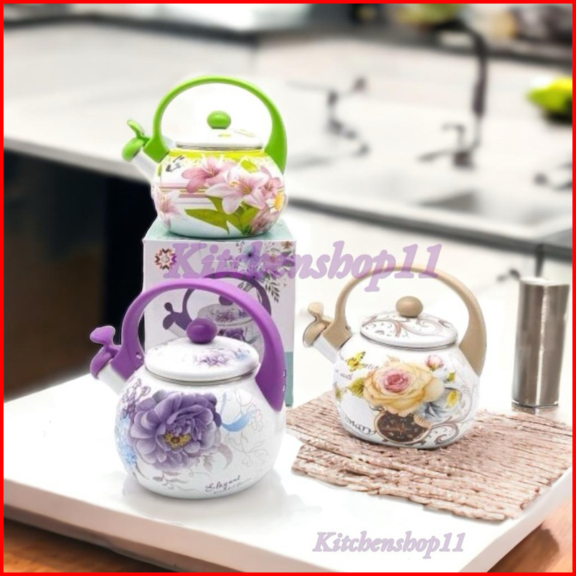 Teko Bunyi Enamel Motif Bunga 2.2 Liter Teko Elegan Cantik Teko Siul Ketel Kettle Bunyi Siul Teko Enamel 2 Liter