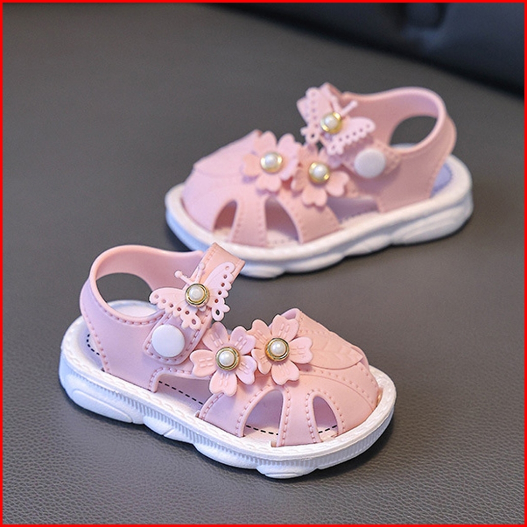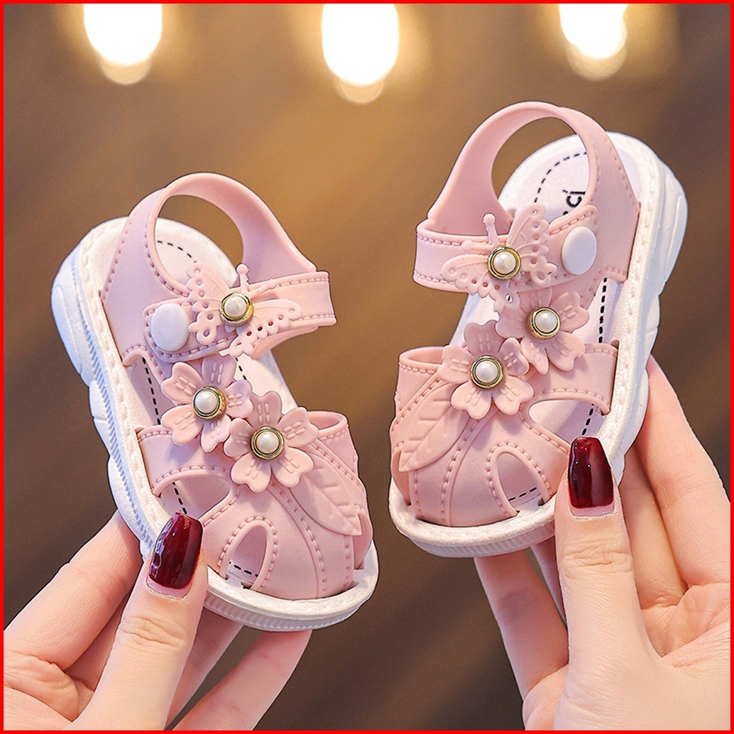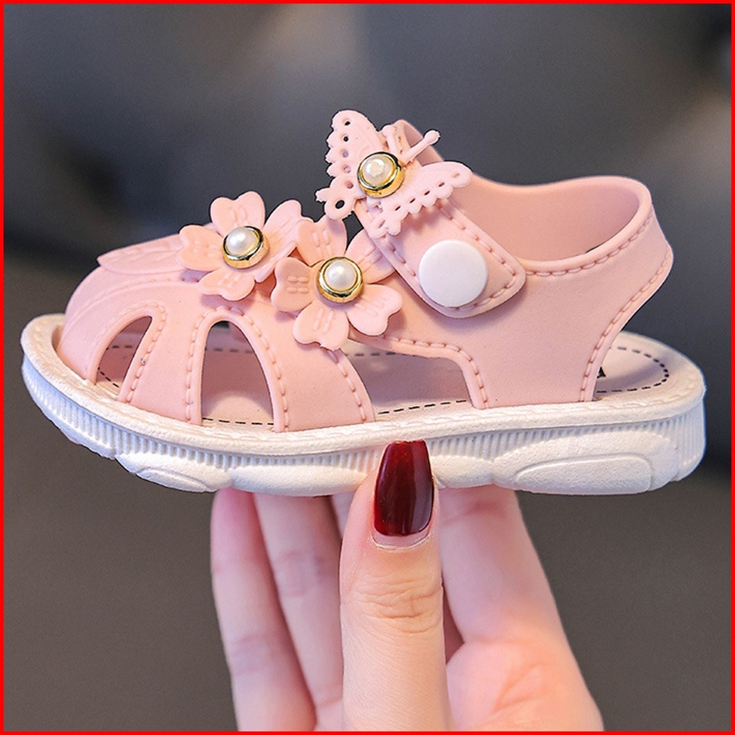 Promo 9.9 Import Okaybaby B387 Sandal Flat Butterfly Anak Perempuan Lucu Lembut Sendal Casual Sepatu Bayi Cewek Bahan Ka
