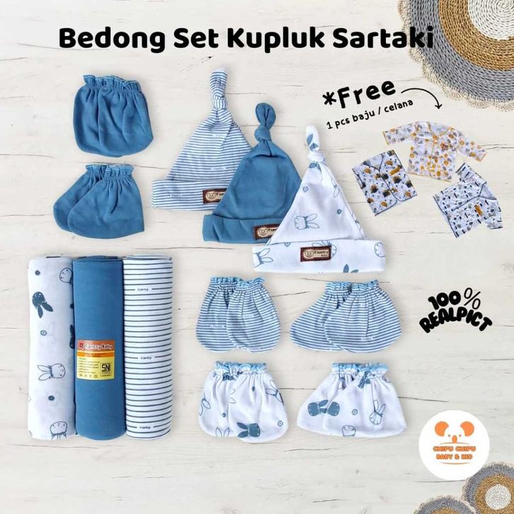 SET BEDONG BAYI DENGAN TOPI KUPLUK PLUS SARTAKI MOTIF LUCU TERMURAH