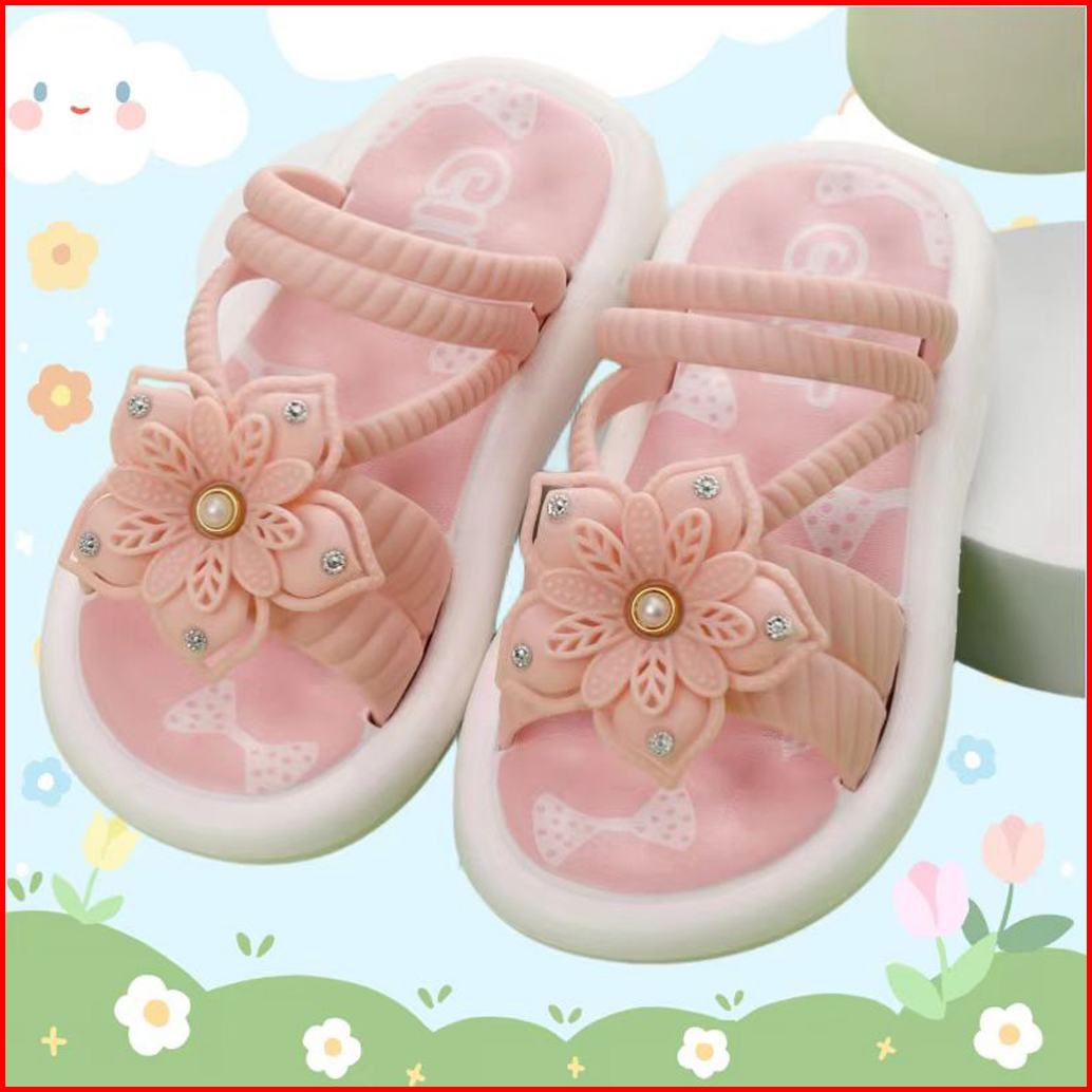 Promo 9.9 Import Okaybaby B357 Sandal Flower Anak Perempuan Sendal Fashion Lucu Sendal Slop Anak Cewek Bahan Karet Jelly