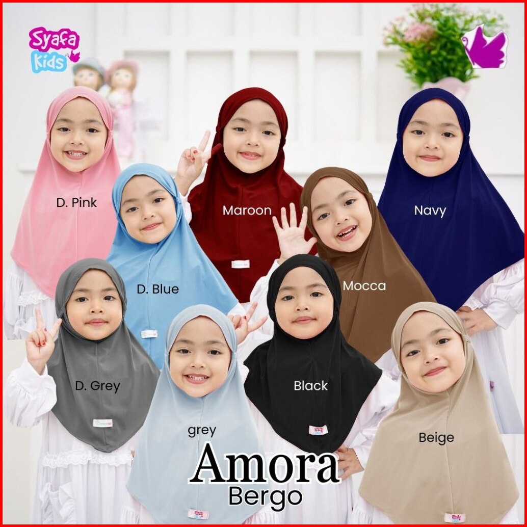 Kerudung Bergo Anak Perempuan Jilbab Bayi Hijab Anak Premium Amora Kids