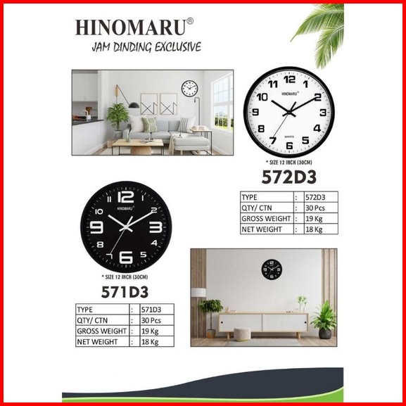 Jam Dinding Aesthetic Hinomaru Wall Clock 572d3 571d3 30cm 12inch Murah