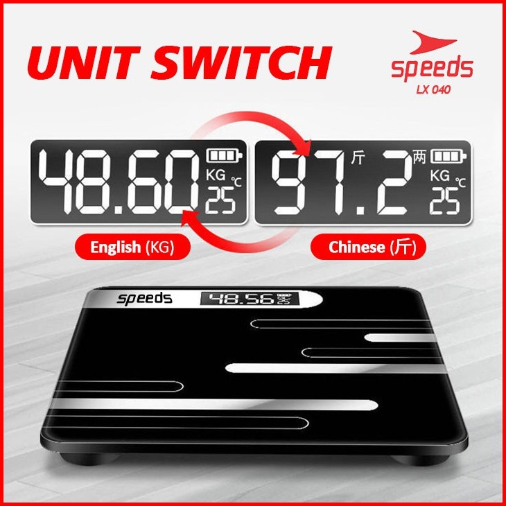 Raga Sports Timbangan Badan Speeds Digital 180kg Scale Kaca Berat Mini Max
