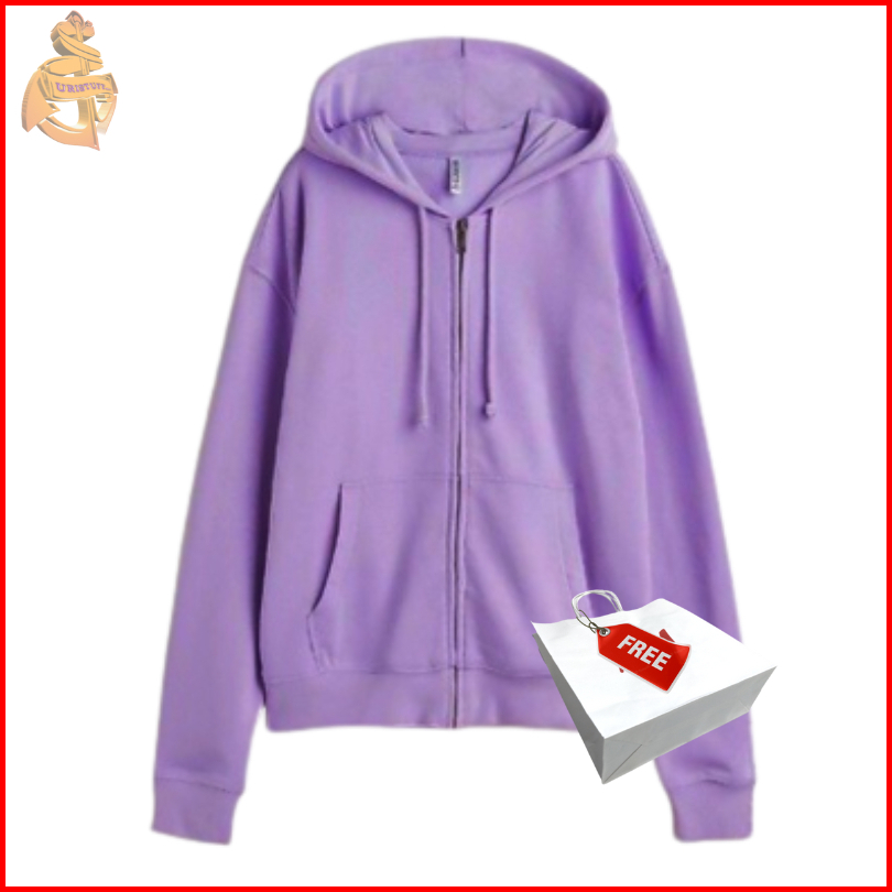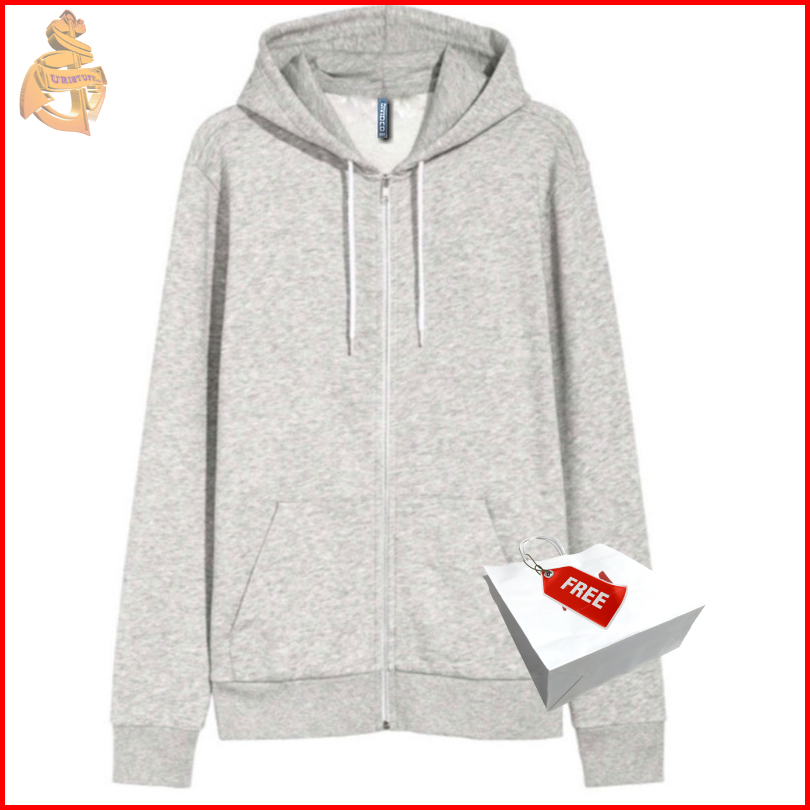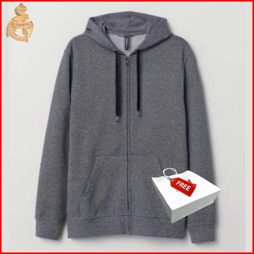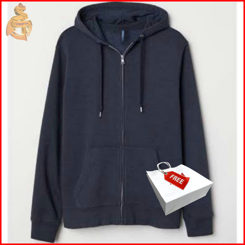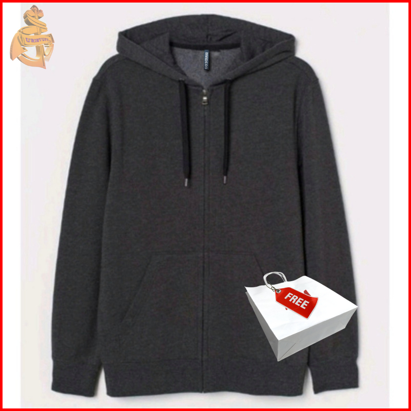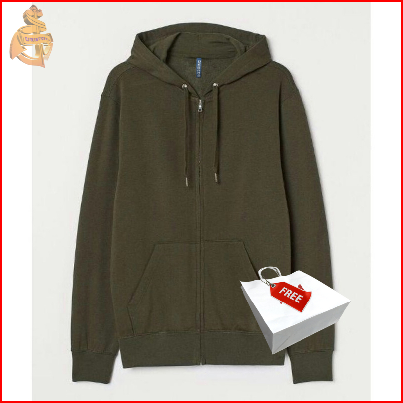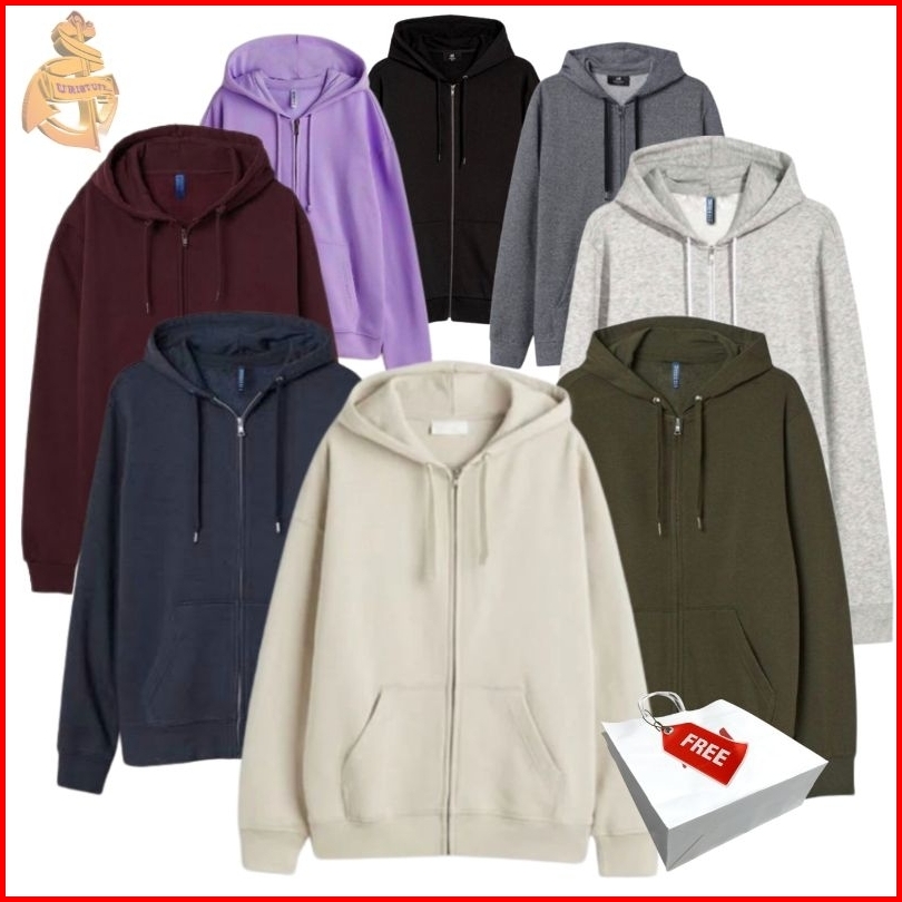 Hoodie Zipper Polos Basic Hm Hitam Army Maroon Grey Navy Brown Hnm Jaket Pria Wanita Free Paper Bag