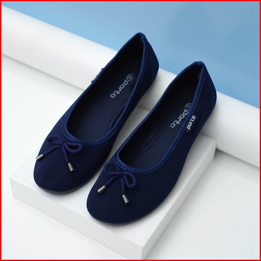 Rumahkaki - Sepatu Balet Flat Wanita Kuliah Kerja Kantor Model Casual Kain Tali Pita Porto Ba202l