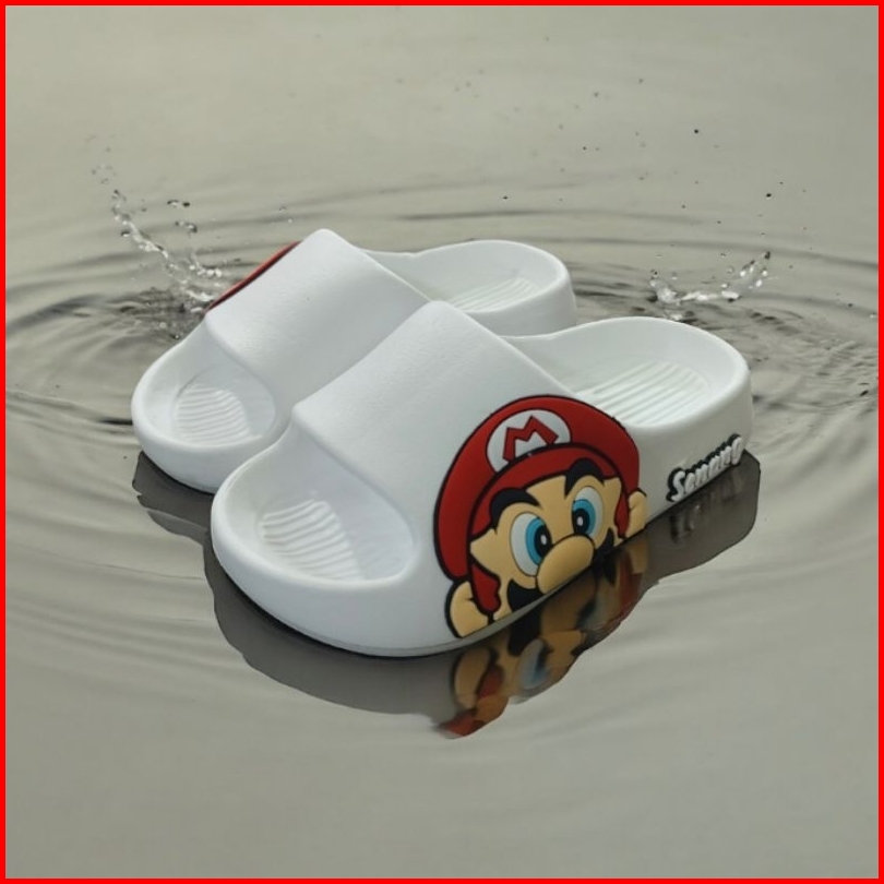 Sandal Selop Anak Cowok Motif Mario Casual Slip On Terbaru Ringan Nyaman