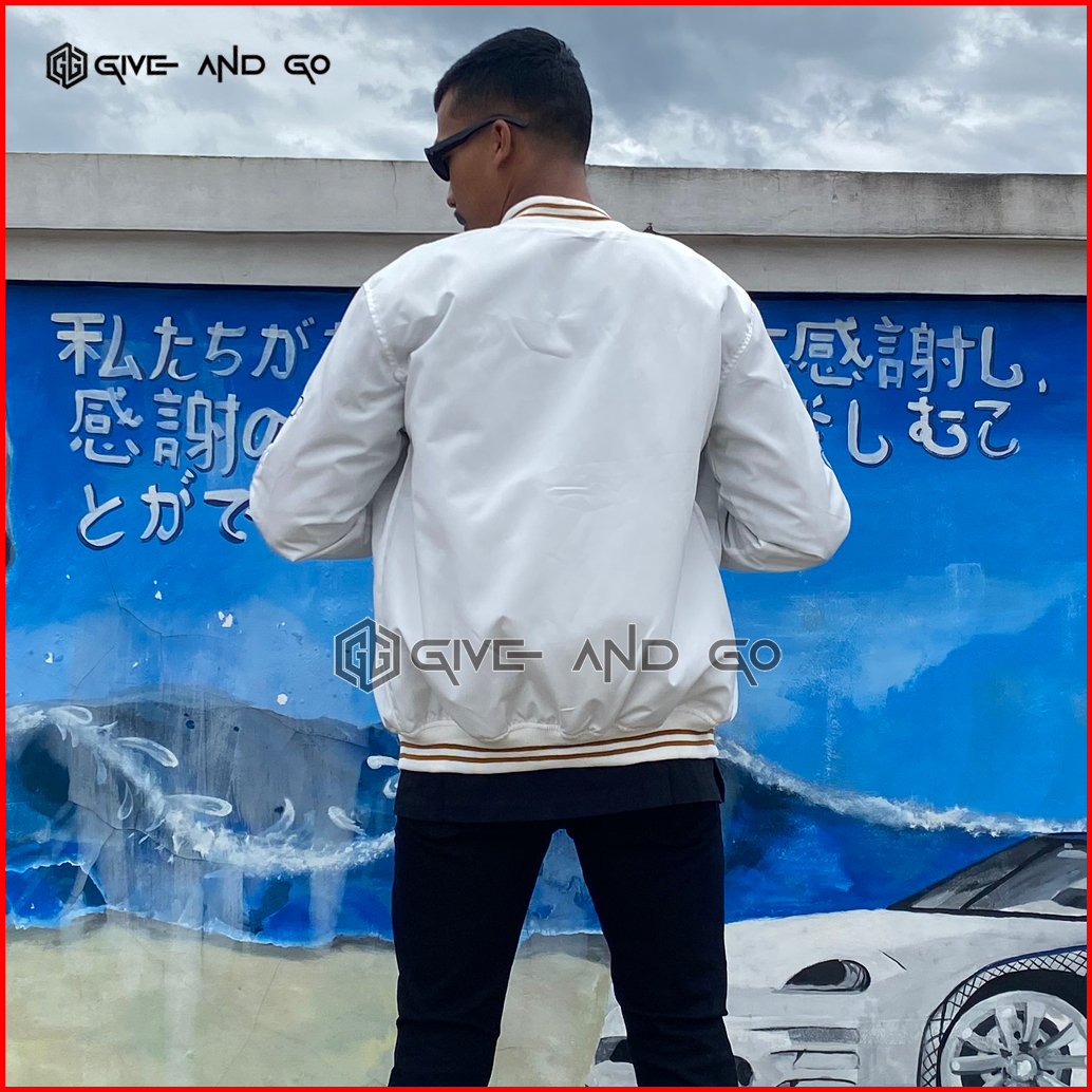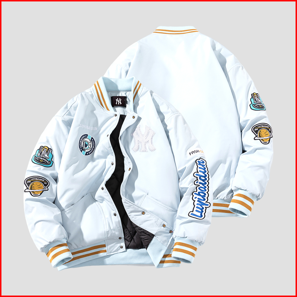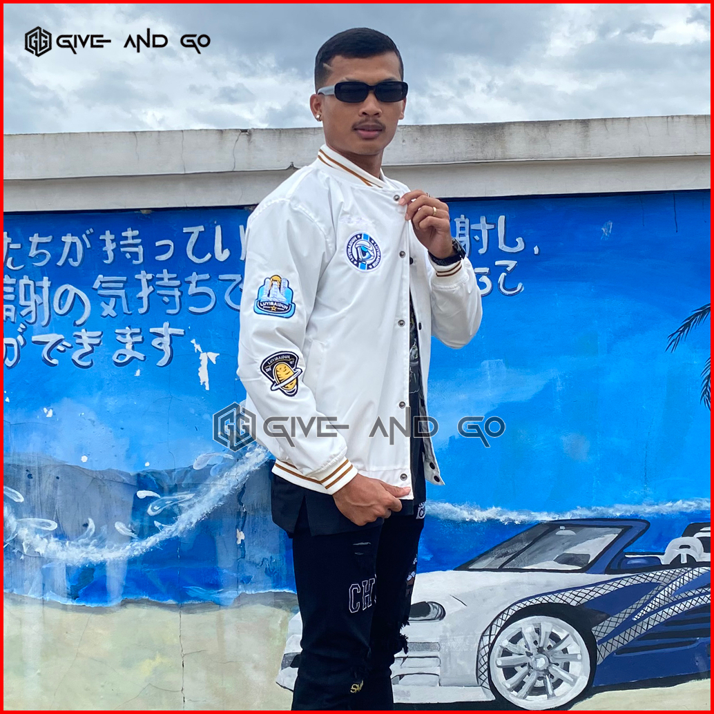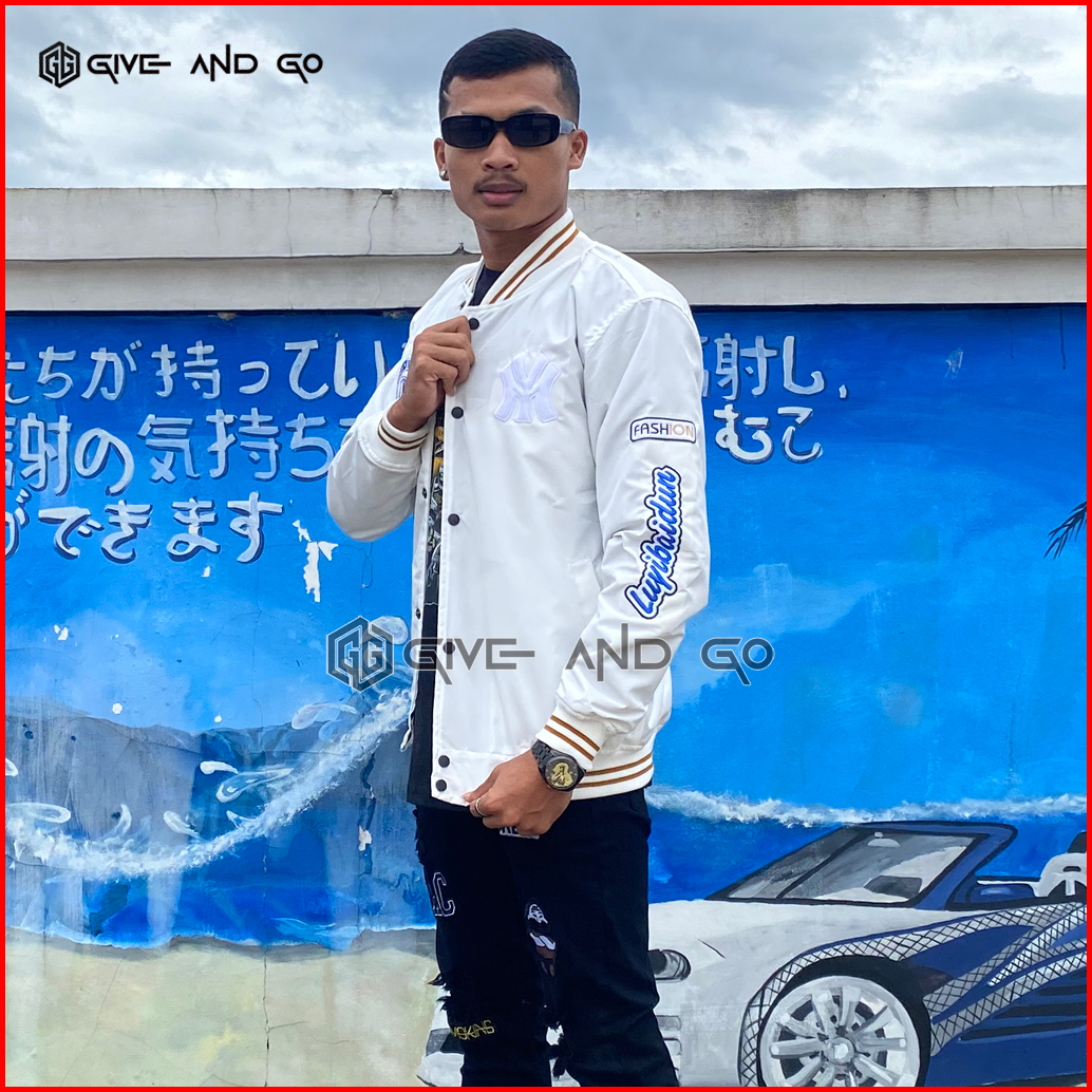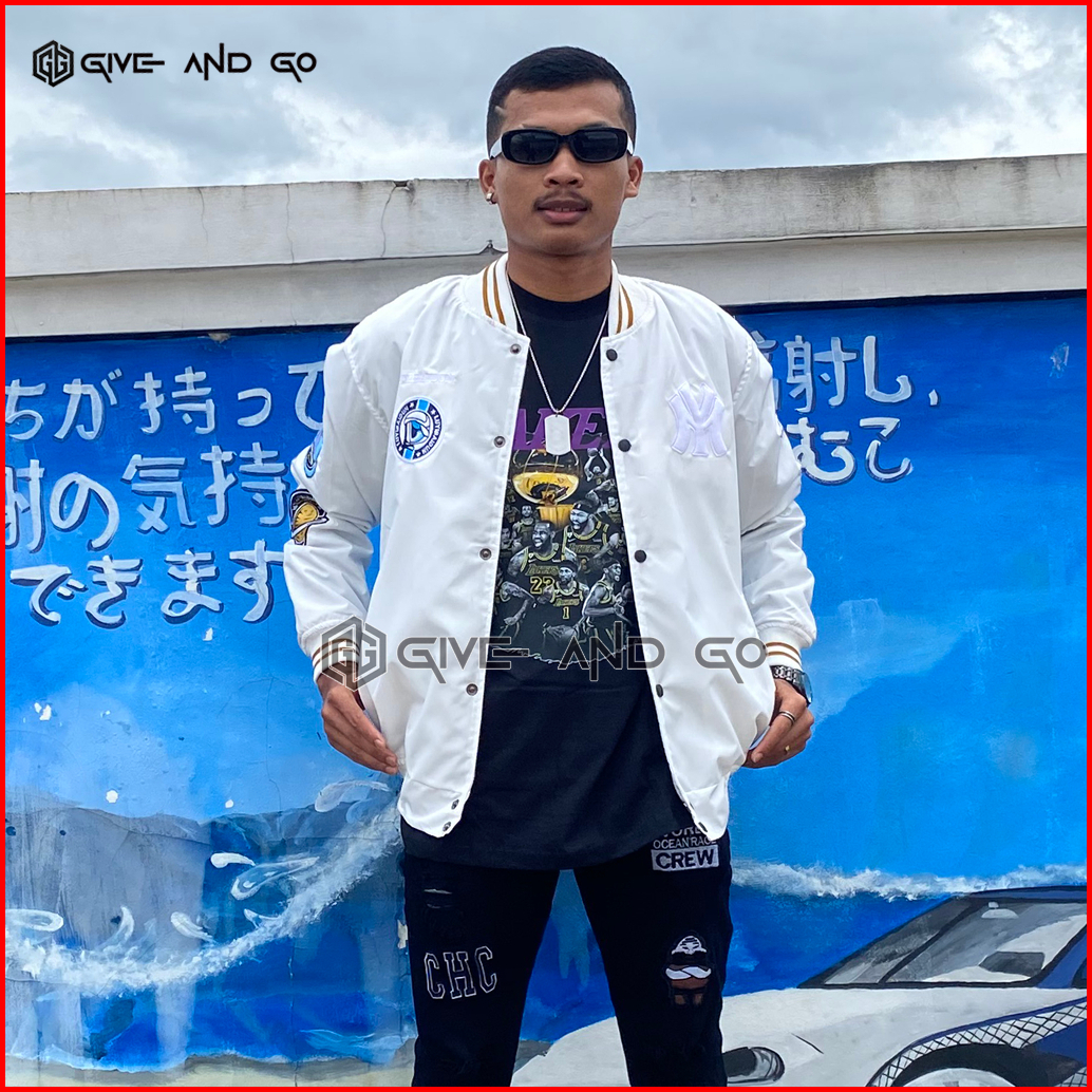 Jaket Baseball Varsity Casual Vintage Putih Pria Wanita Korean Style Full Bordir