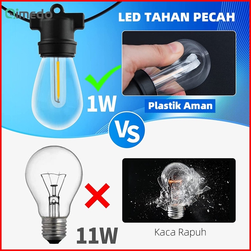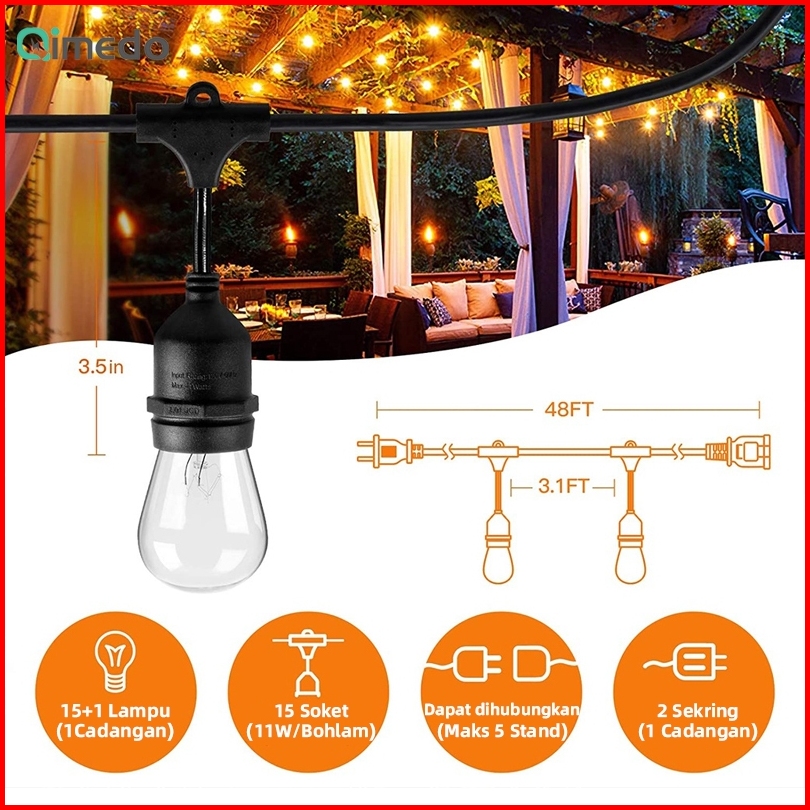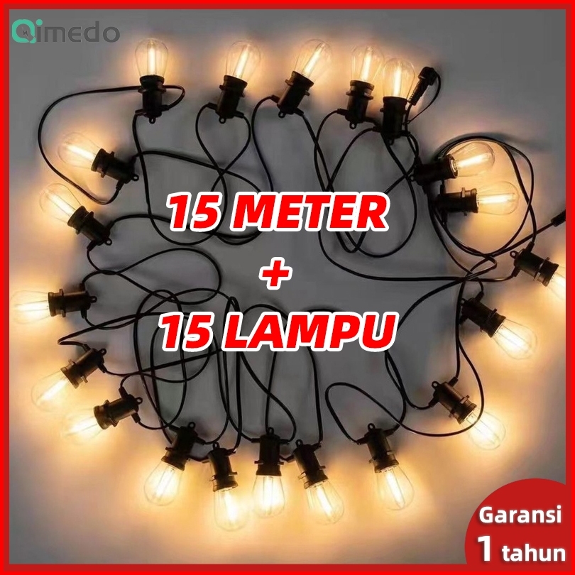 15 Meter 15 Lampu Led Outdoor Fitting Lampu Tahan Air Kafe Dekorasi Lampu Hias Komplit Lampu