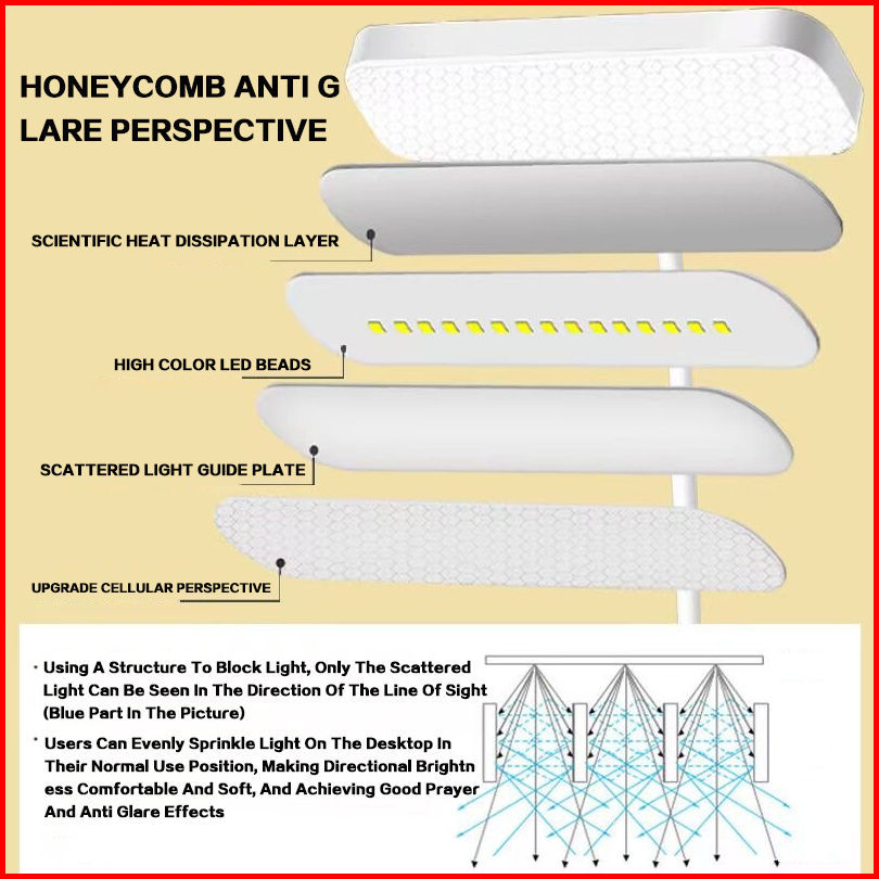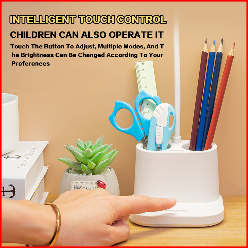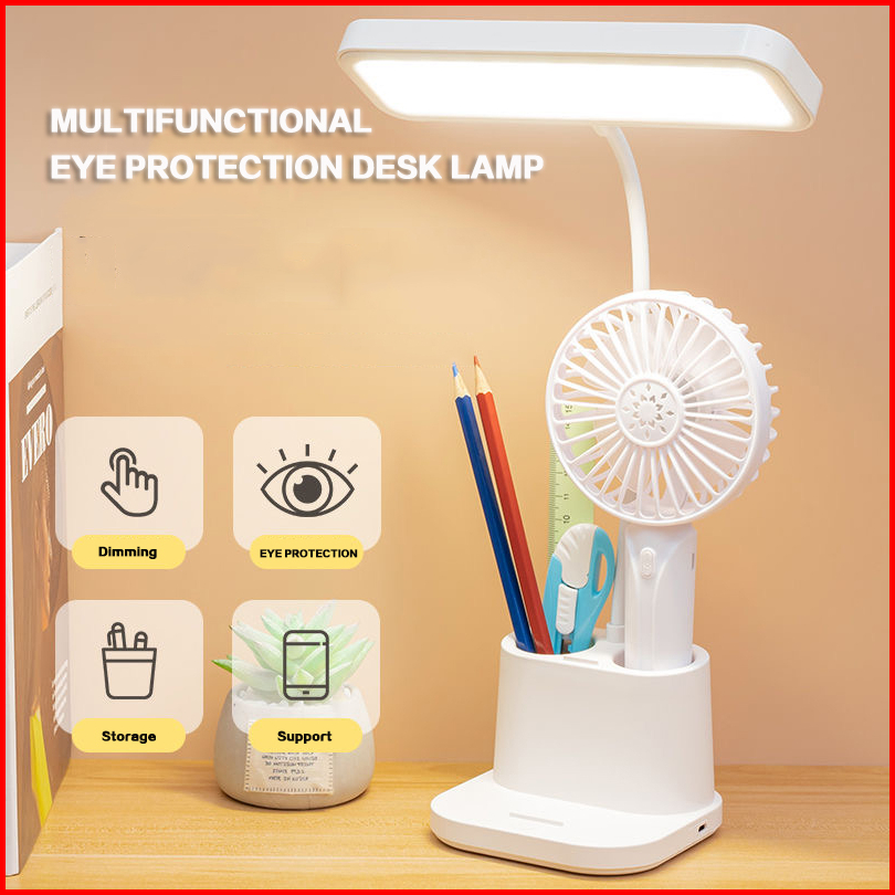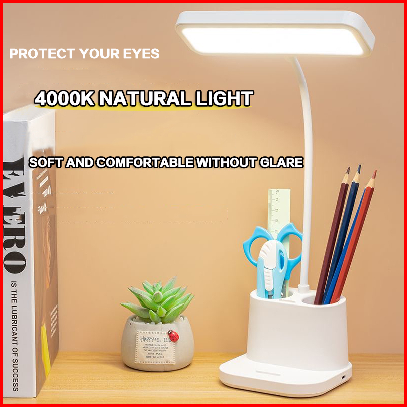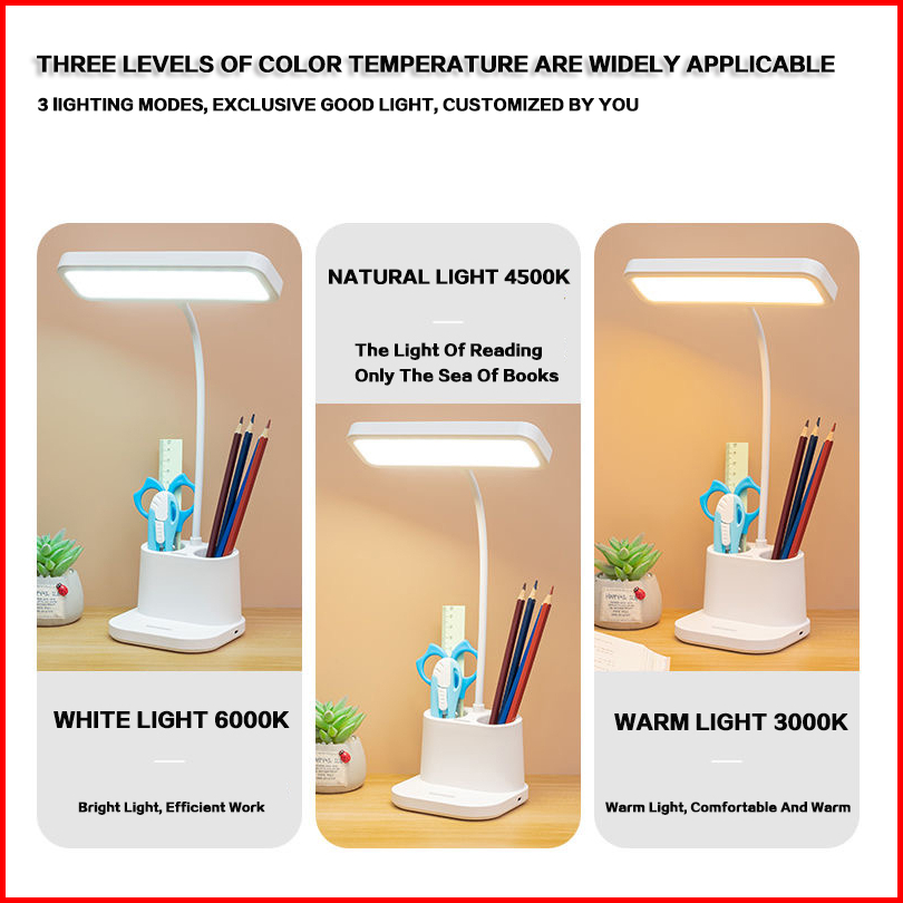 Rechargeble Led Lampu Meja Lampu Belajar Three Color Adjustable Lampu Malam Lampu With Kotak Penyimpanan Pensil