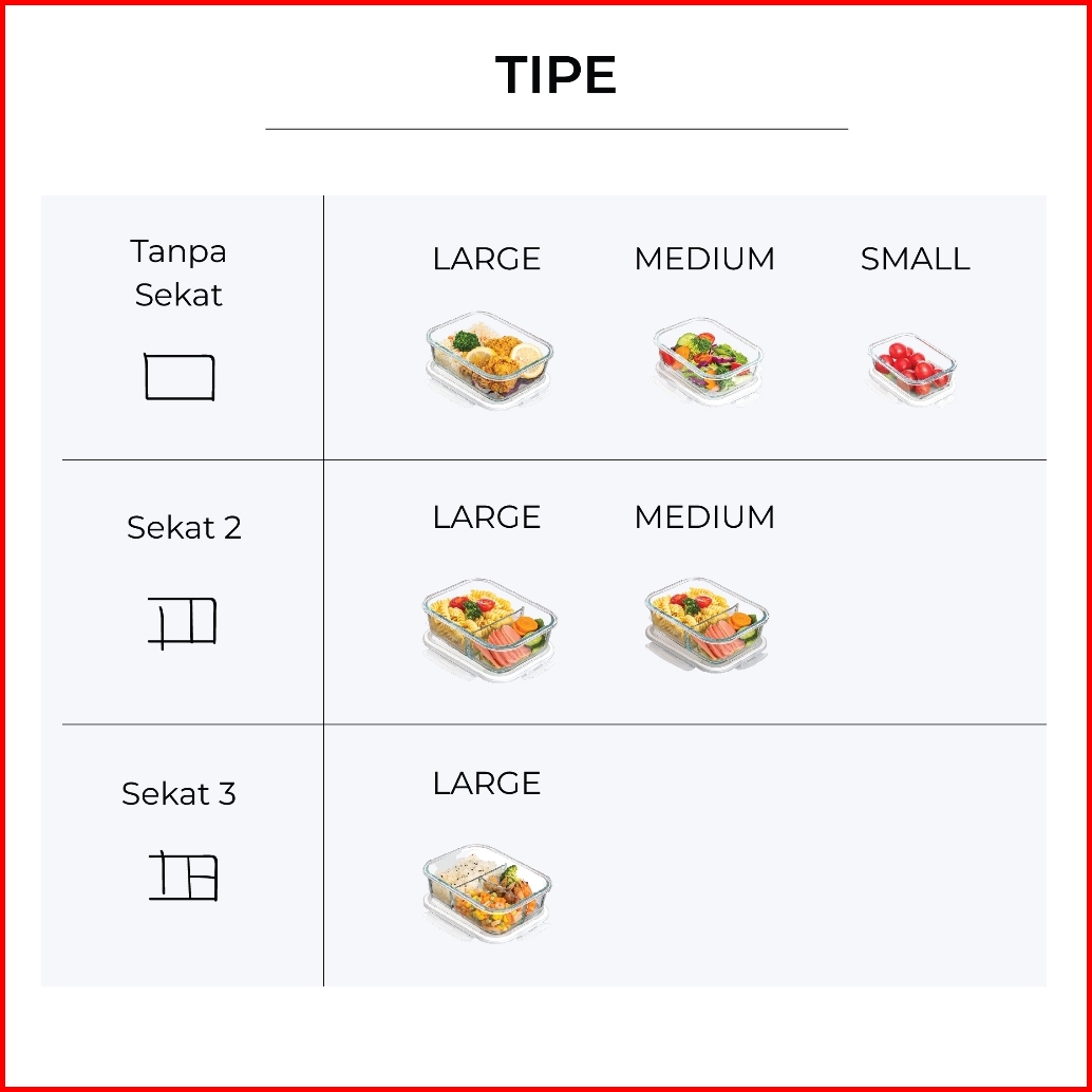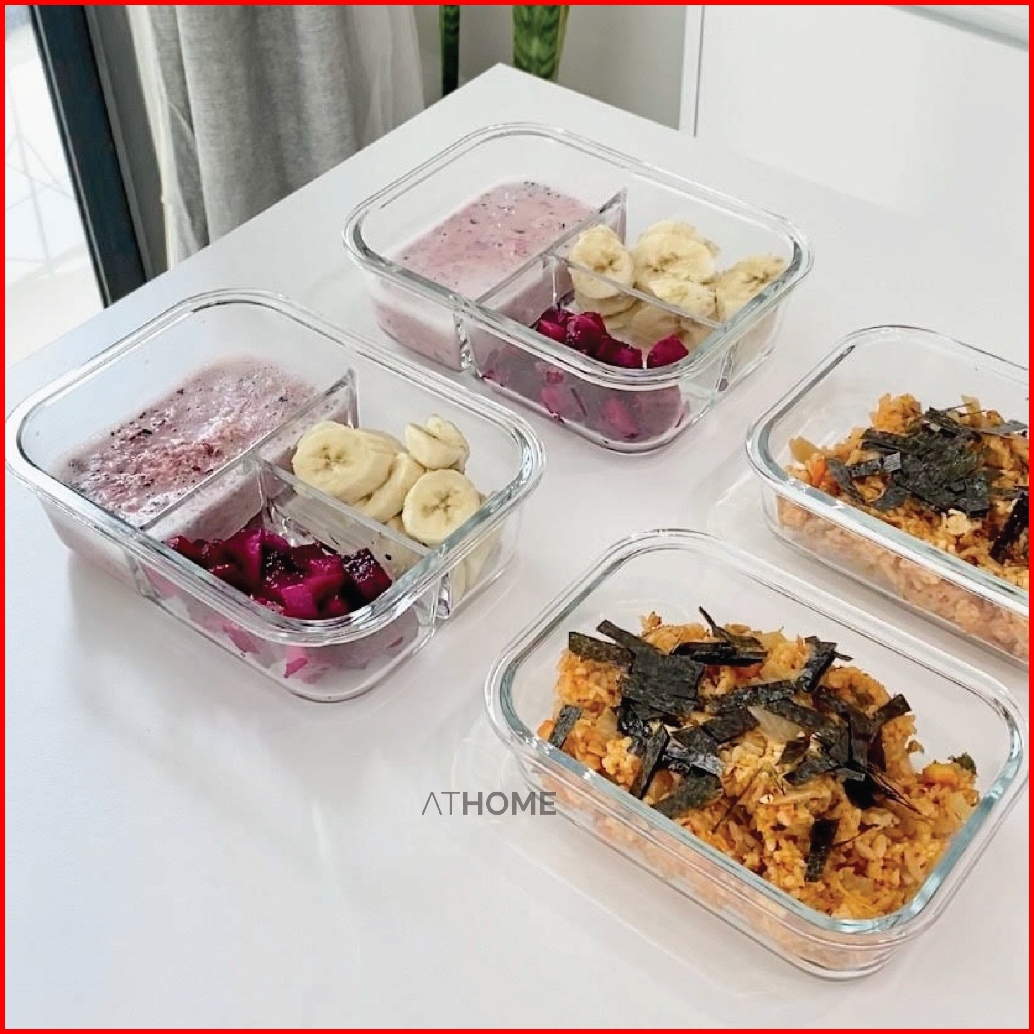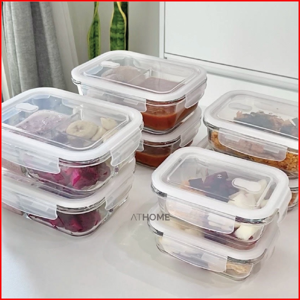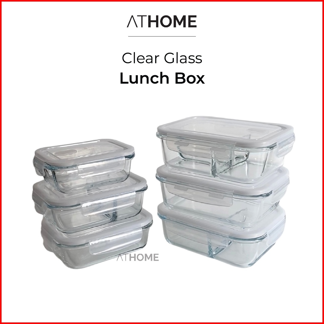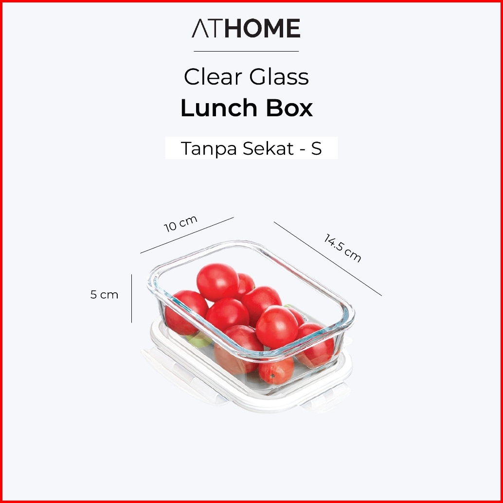 Athome Clear Glass Lunch Box Kotak Makan Kaca Sekat Kedap Udara Anti Bocor