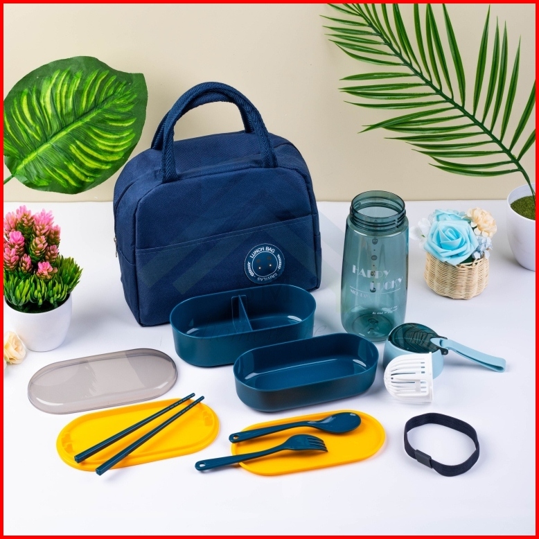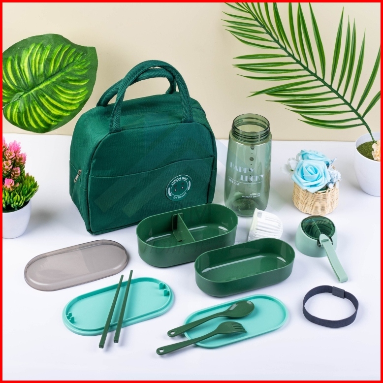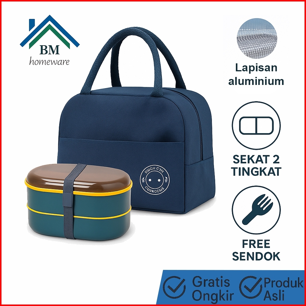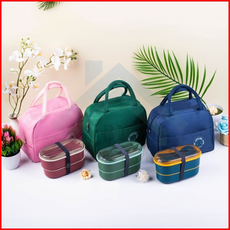 Set Kotak Makan 2in1 Lunch Box Tingkat Tas Thermal Lunch Bag Kotak Makan Tas Bekal