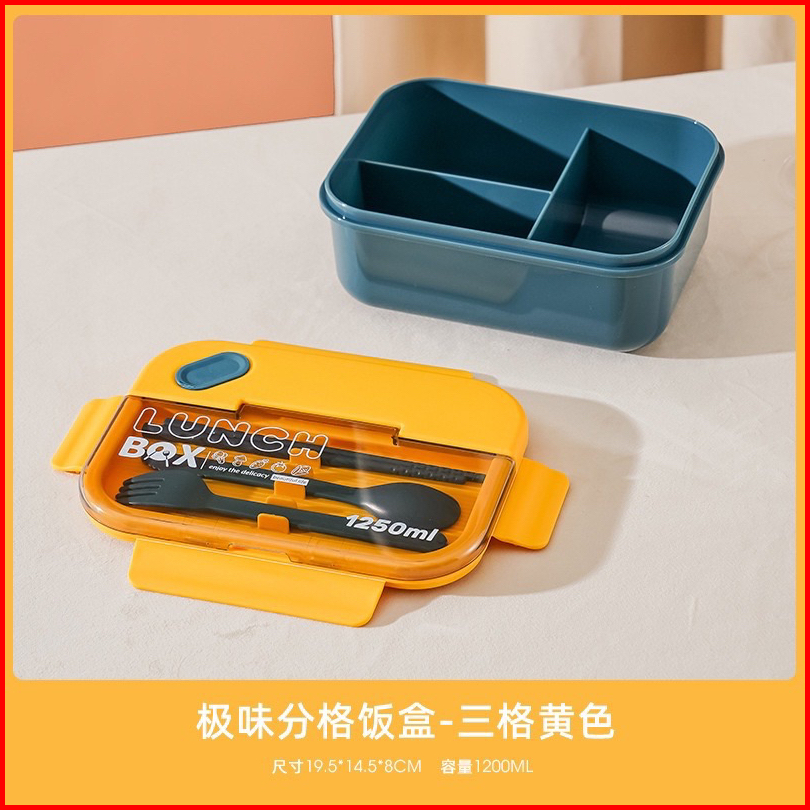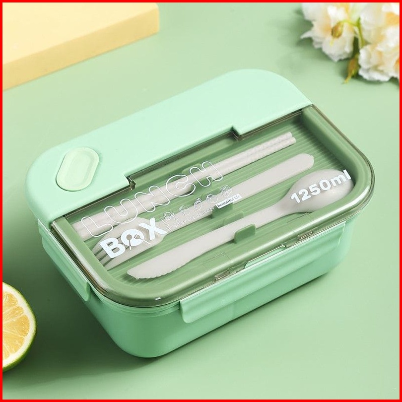 Kotak Makan Lunch Box 1250ml Anti Tumpah Free Sendokgarpu Sumpit 2 Sekat