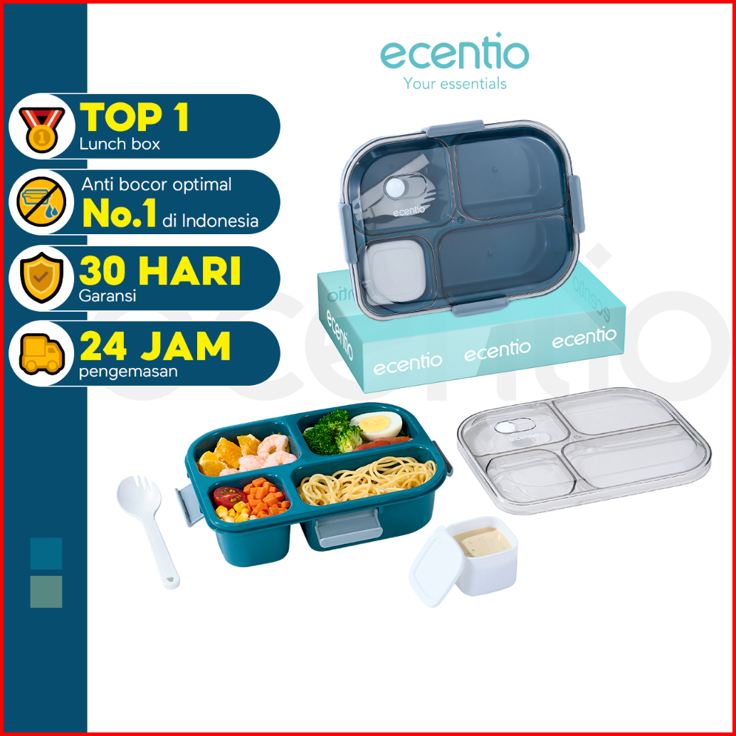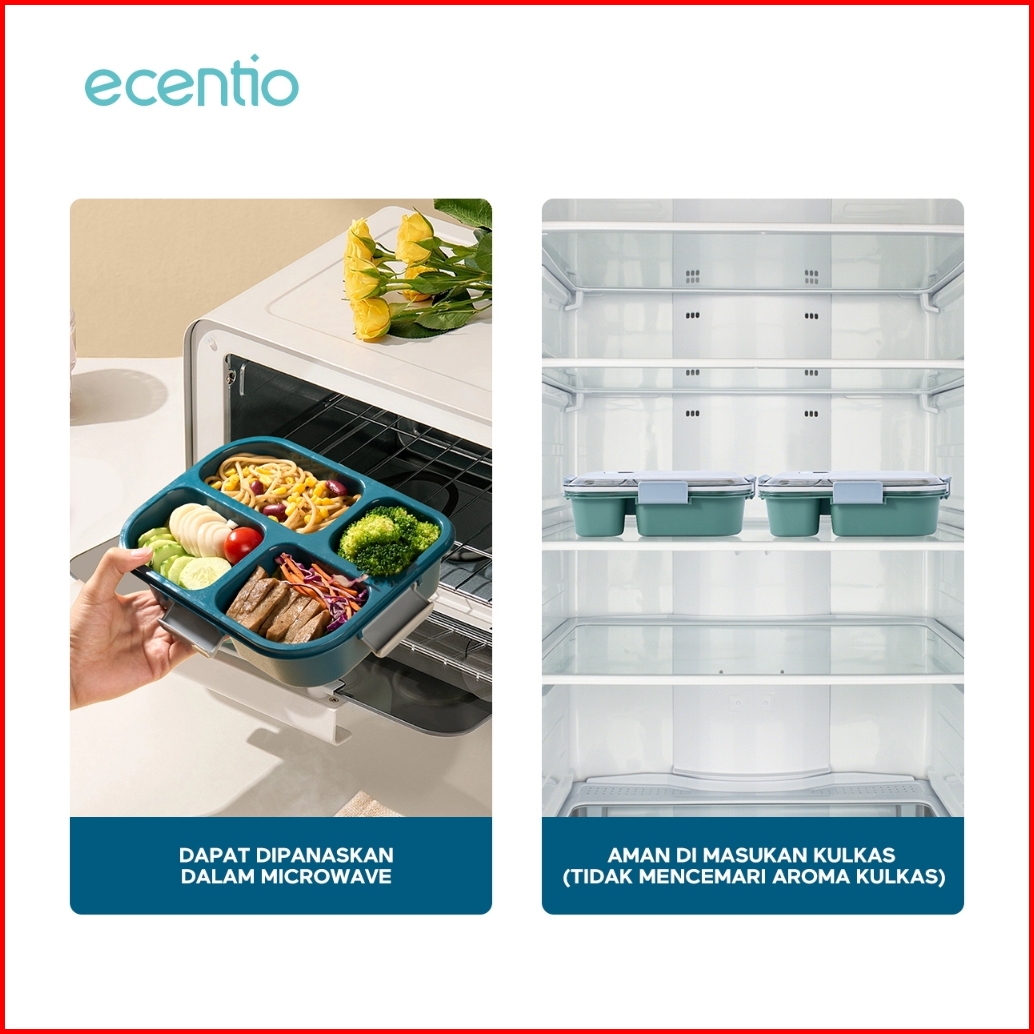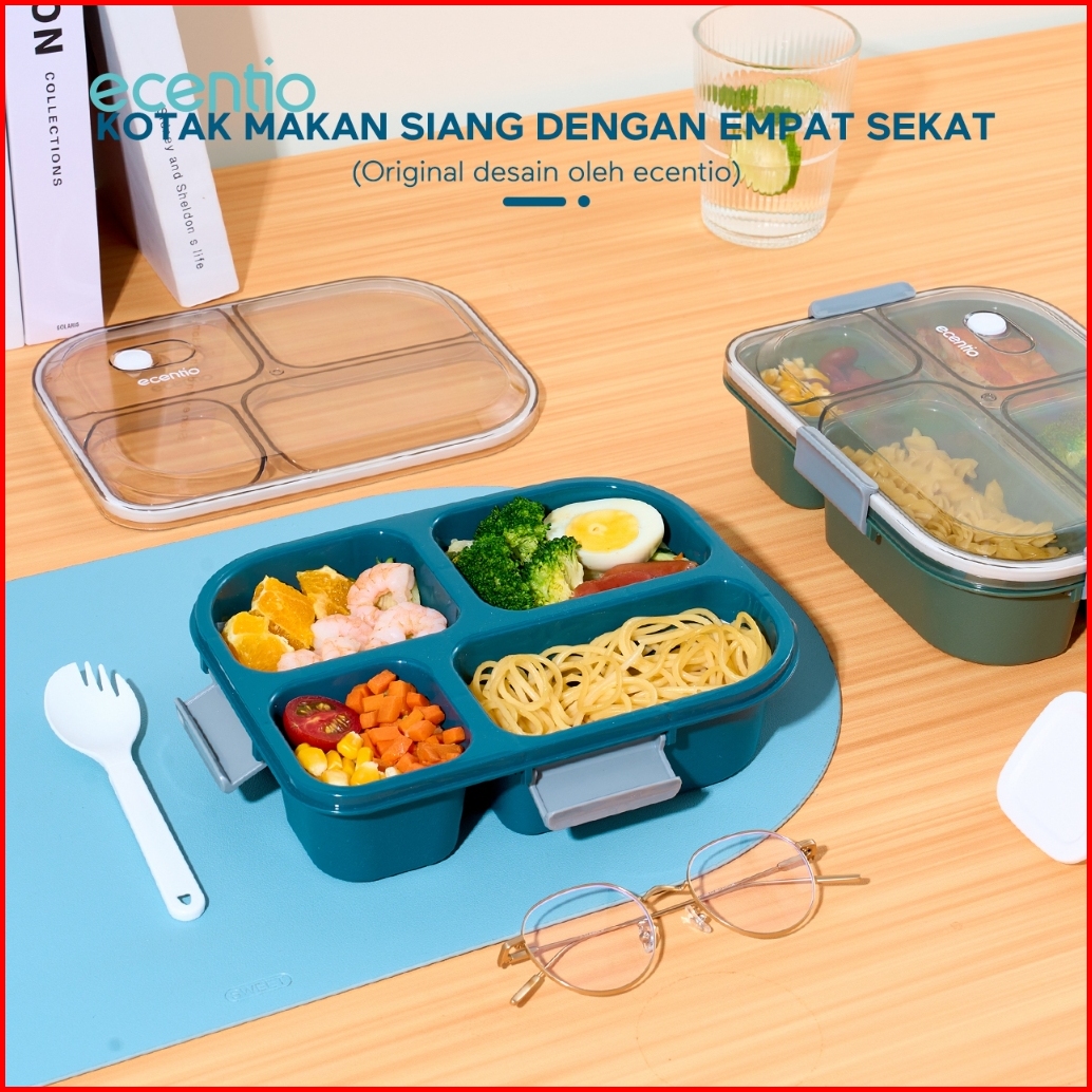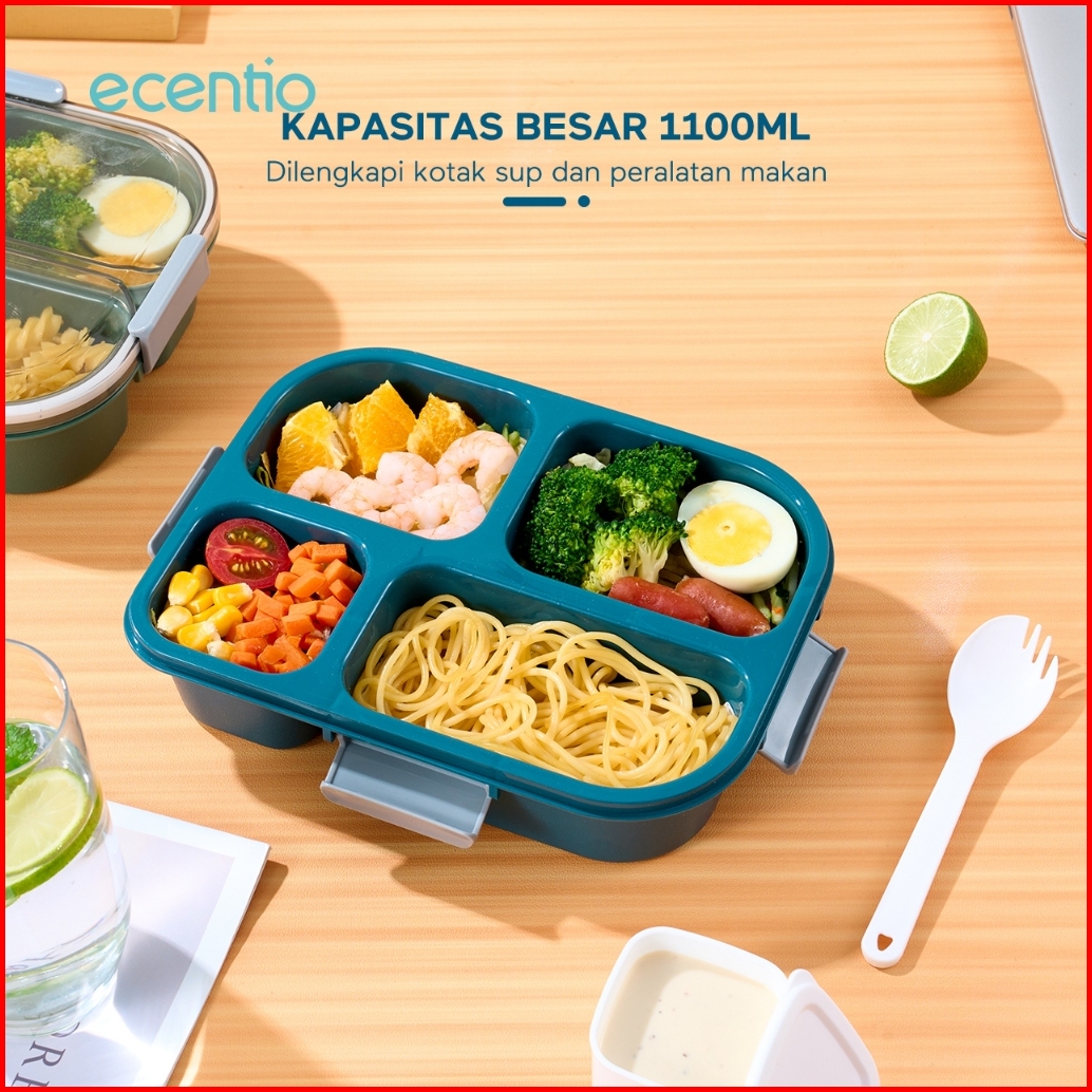 Bpa Freeecentio 1100ml 4 Grid Kotak Makan Kotak Bekal Anti Tumpah Lunch Box Anti Tumpah Free Sendok