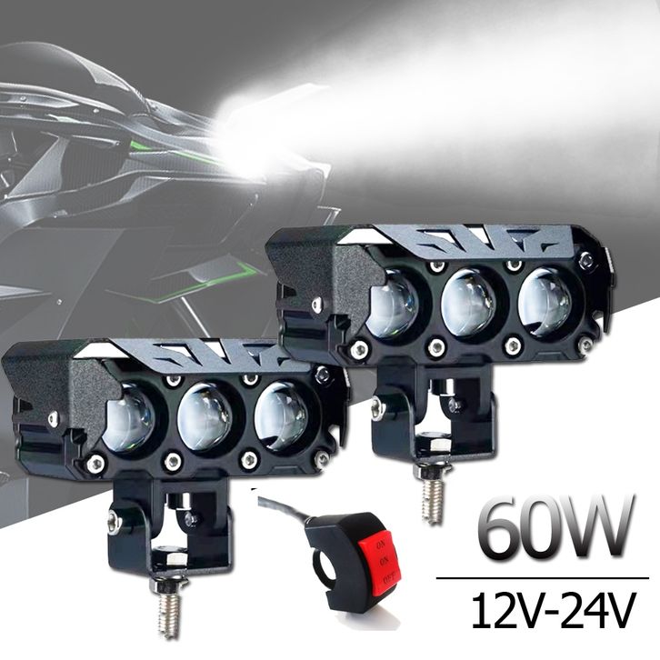 Lampu Led Motor Lampu Berkendara Mini Lampu Depan 3LED Super Terang Lampu Tambahan Sepeda Motor Putih + Kuning 12V 24V