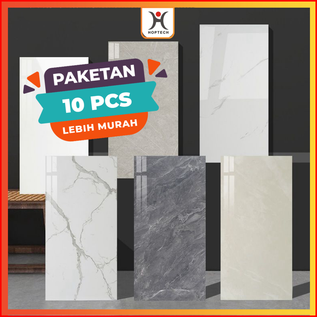 Hoptech - Paket 10 Pcs Wallpaper Vinyl Marble 30x60cm Stiker Lantai Granit Lemari Cabinet