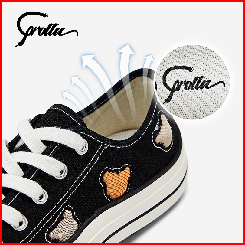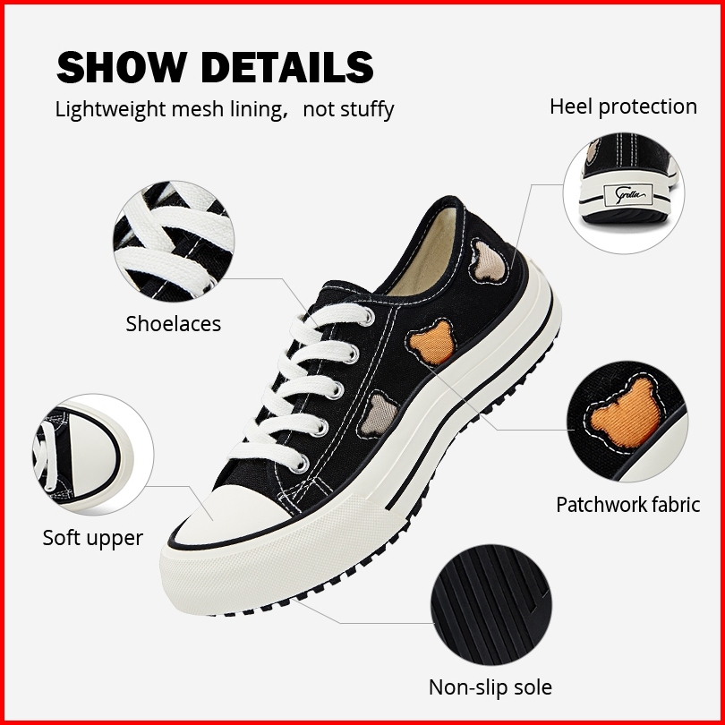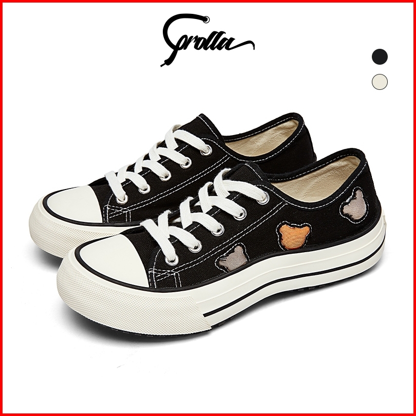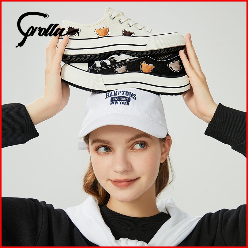 Corolla Sepatu Kanvas Wanita Putih Cute Bear Sepatu Gelombang Fashion Cox2923301