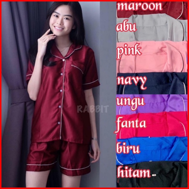 Bajutidur Piyama Pendek Satin Exclusive Silk Polos