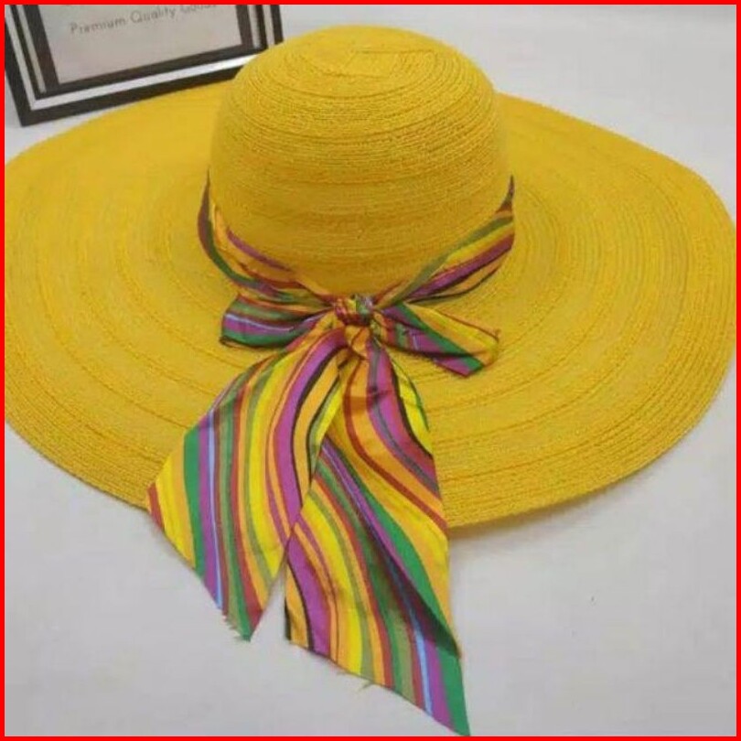 Topi Pantai Wanita Floopy Hat Nylon Pita Lebar Import