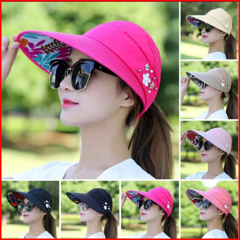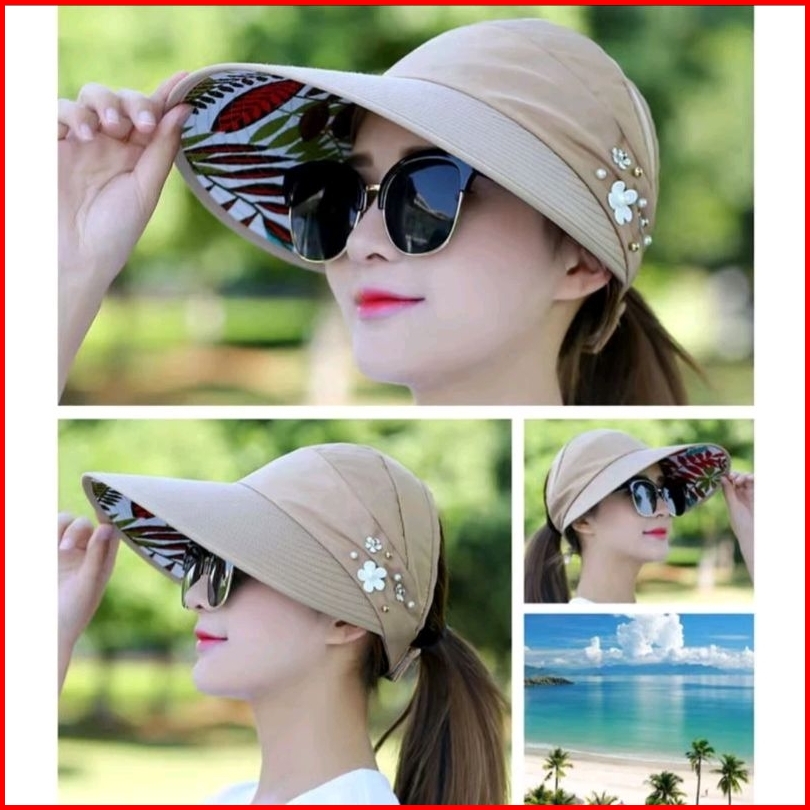 Topi Wanita Lipat Pelindung Sinar Uv Topi Santai Topi Pantai Outdoor Hat Topi