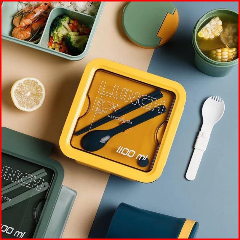 Kotak Makan Bento Lunch Box Set Transparan Bpa Free