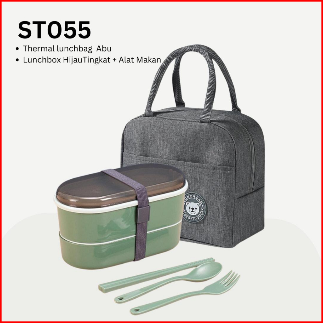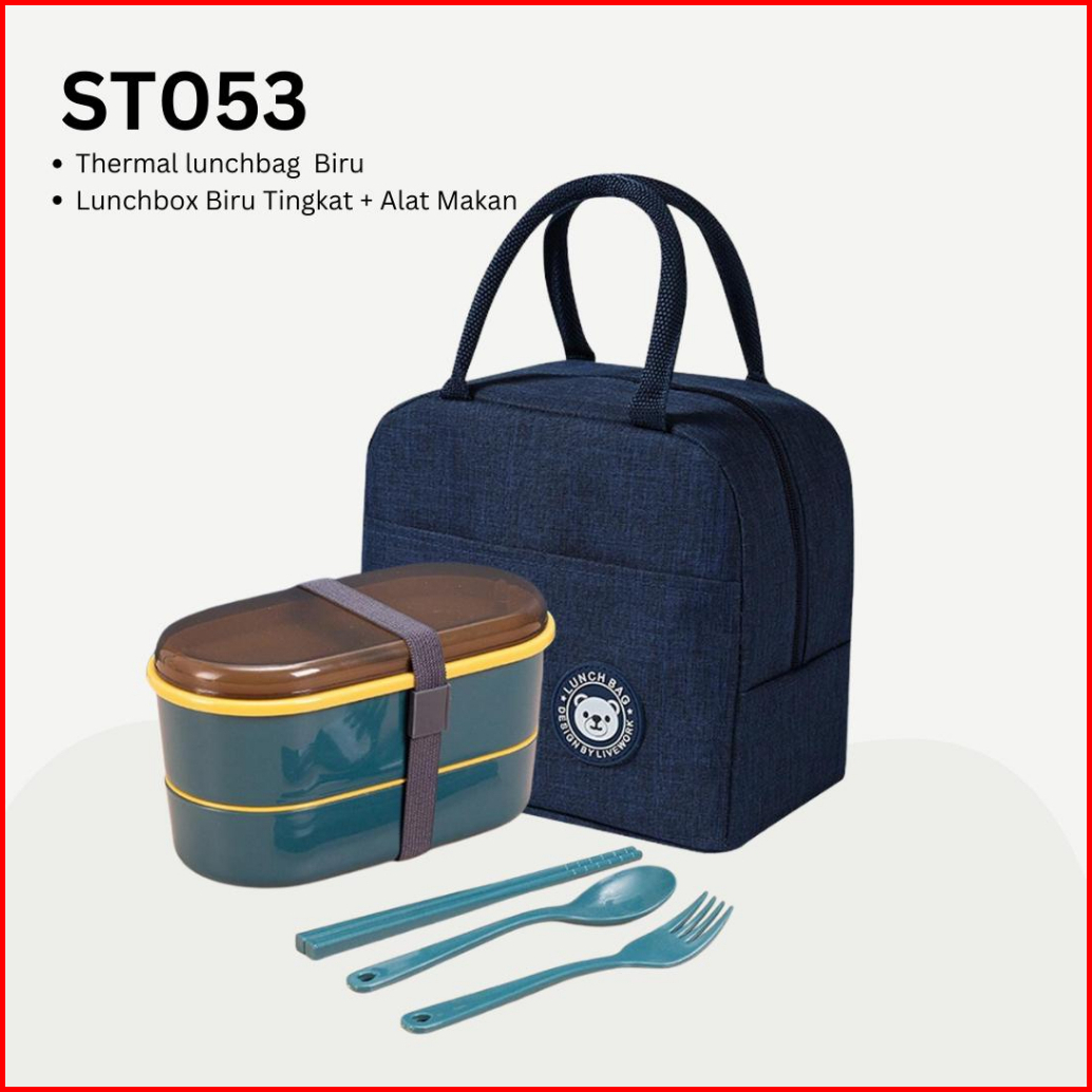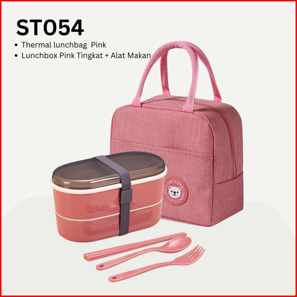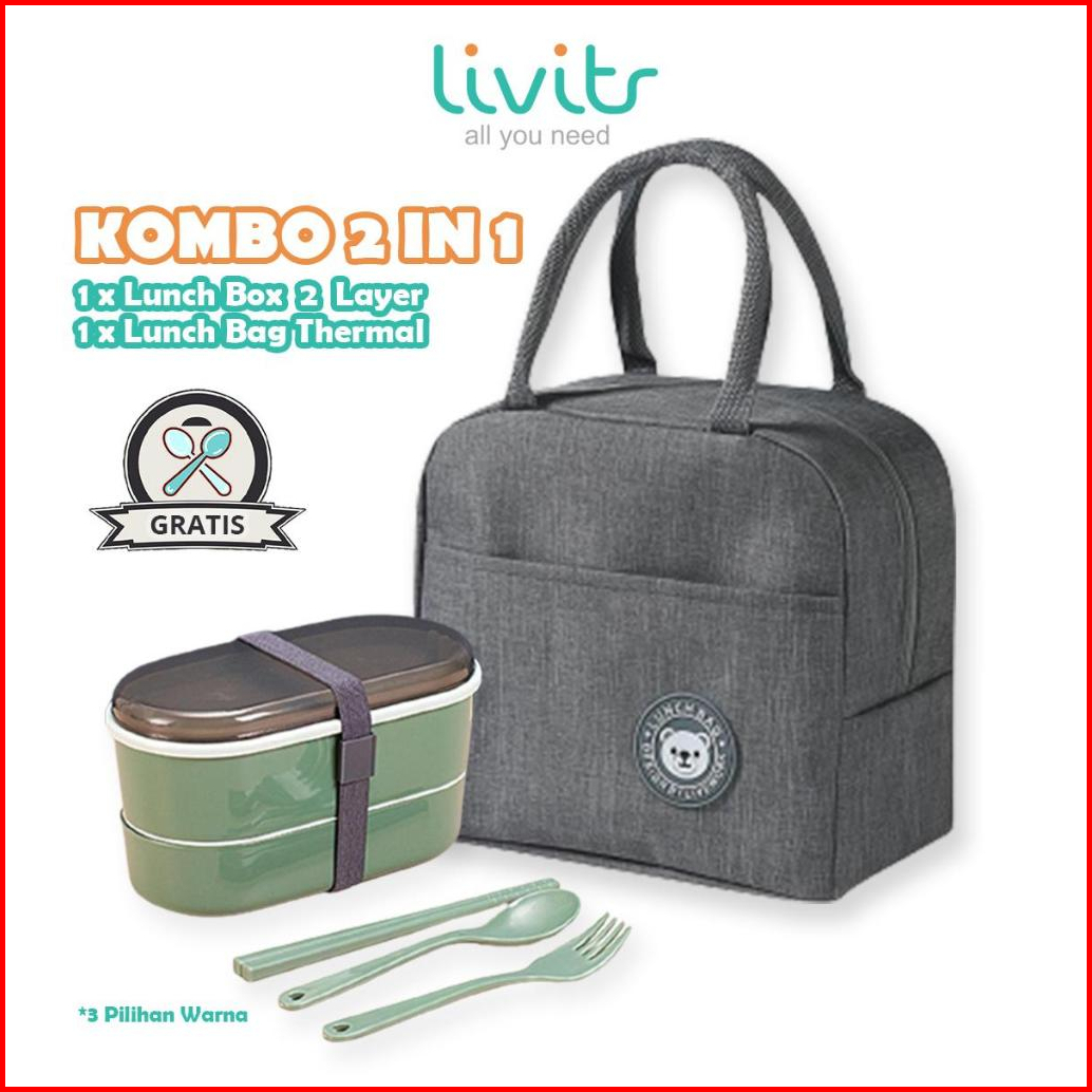 Set Kotak Makan 2 In 1 Rantang Lunch Box 2 Tingkat Tas Thermal Lunch Bag Warna