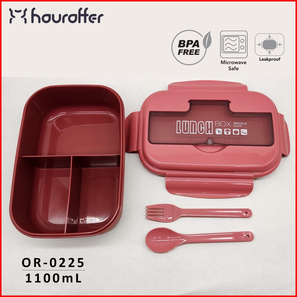 Olla Kotak Makan Or-0225 - Lunchbox Anti Tumpah 3 Sekat Anti Tumpah Free Sendok Garpu