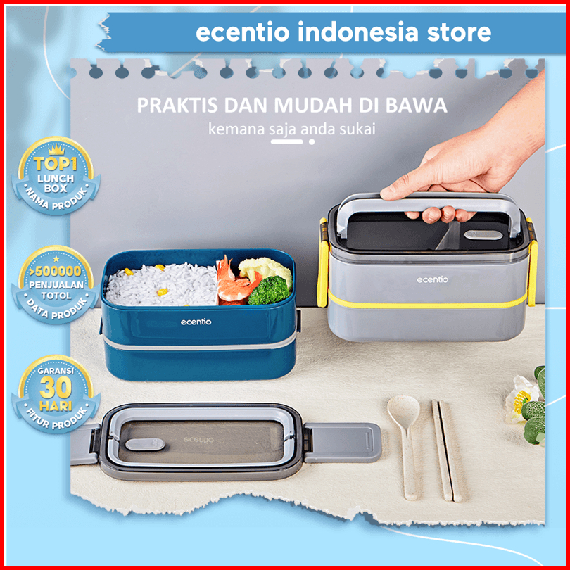 1.0 Anti Tumpahecentio 2 Susun Kotak Makan Free Sendok Dan Pegangan Anti Tumpah Tempat Makan Kotak Bento Box Lunch Box B