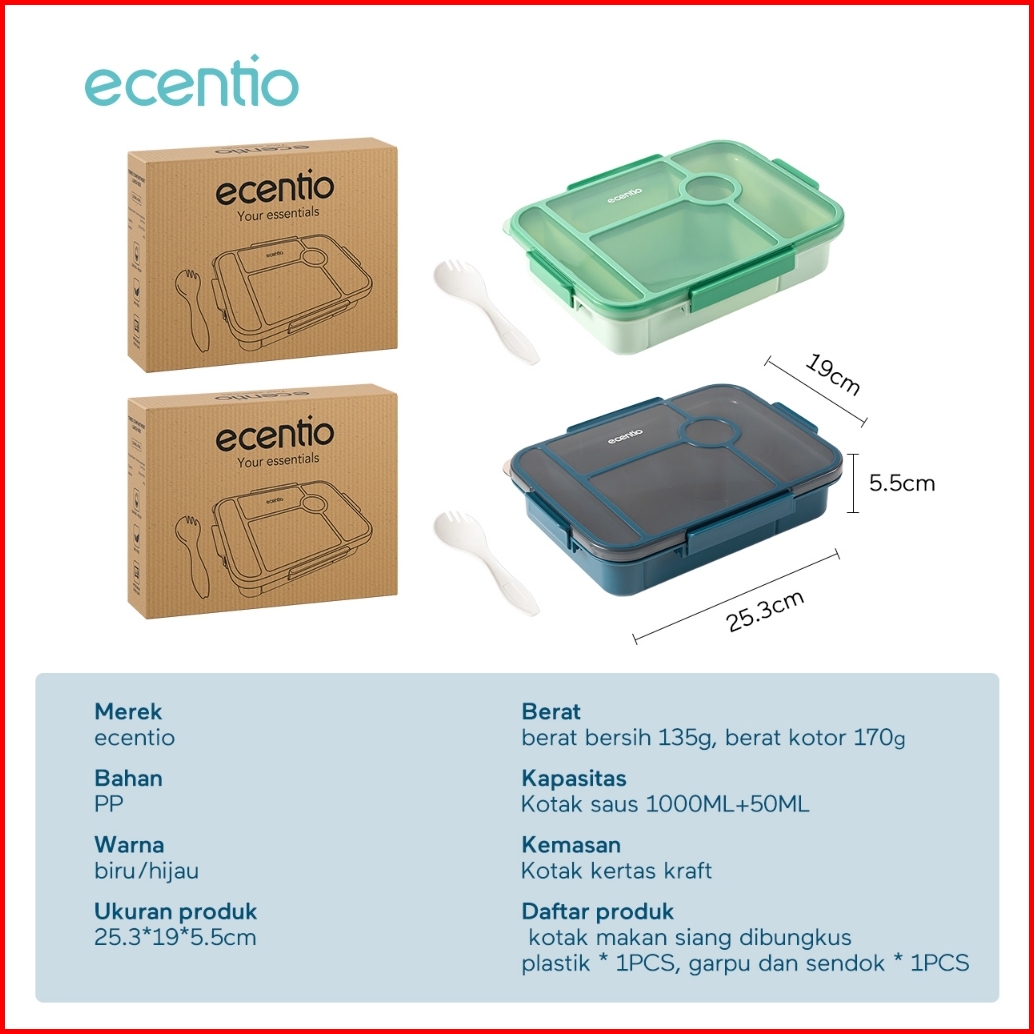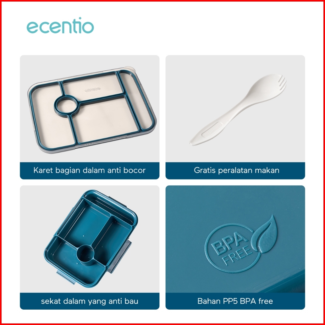 2.0 Anti Tumpahecentio Foodi 3 Sekat Kotak Makan 1000ml 50ml Anti Bocor Lunch Box Dan Kotak Saus Bpa Free
