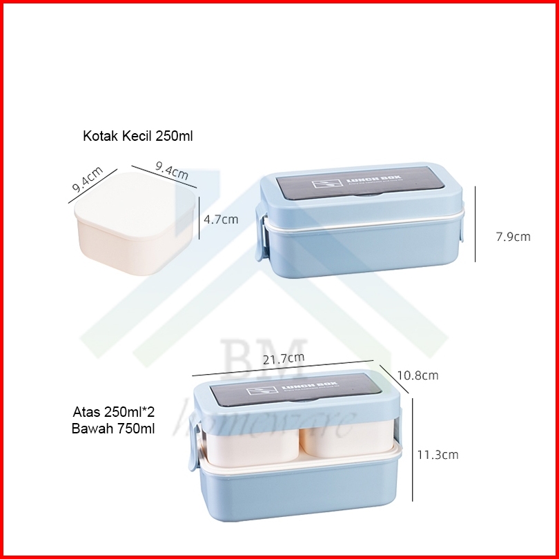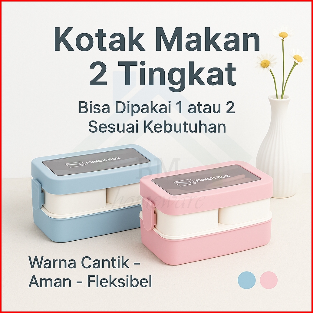 Kotak Makan 2 Tingkat 1000ml Lunch Box Bpa Free Kotak Bekal