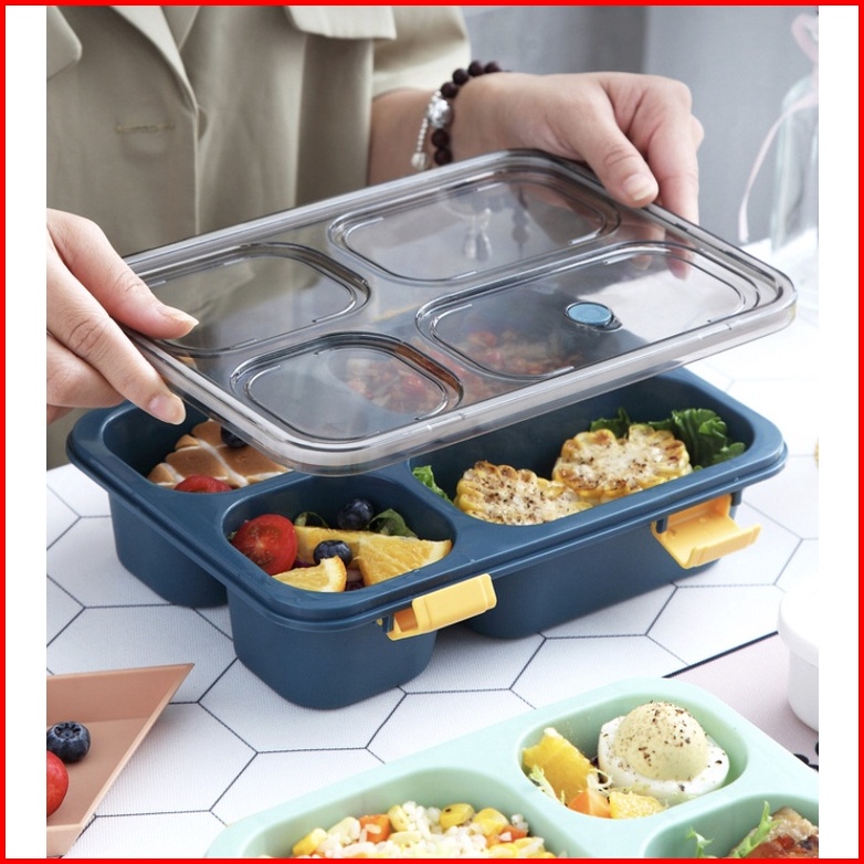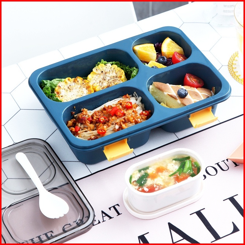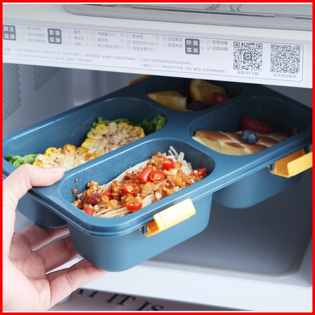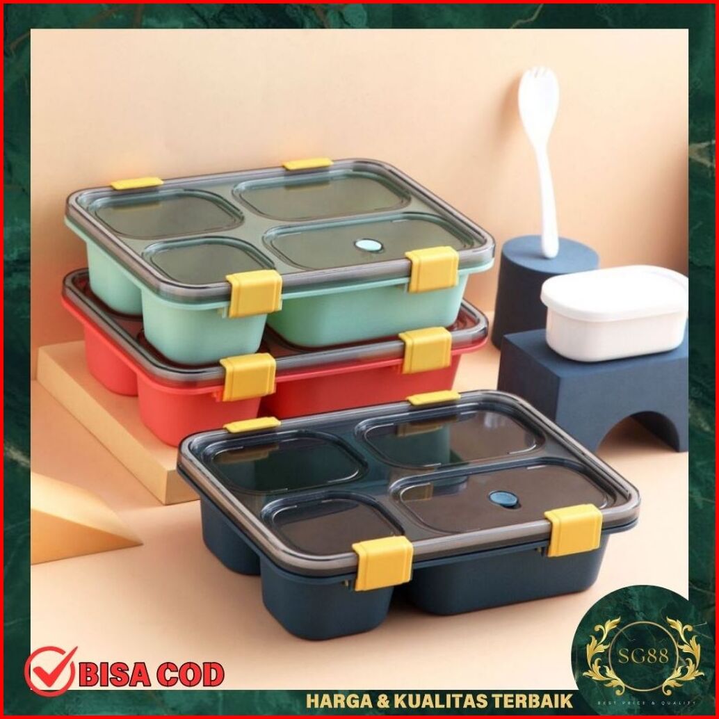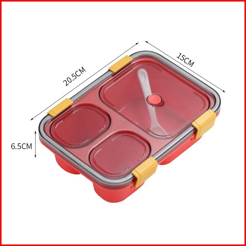 Kotak Makan Bento 3 Grid Free Sendok Kotak Makan Bekal Anti Tumpah 850 Ml Lunch Box Food Grade