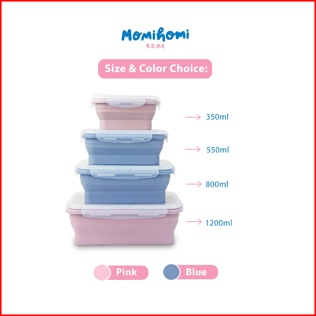 Momi Homi Silikon Food Container 3011 Tempat Penyimpanan Makanan Bahan Silikon Foldable Praktis Anti Tumpah Food Grade A