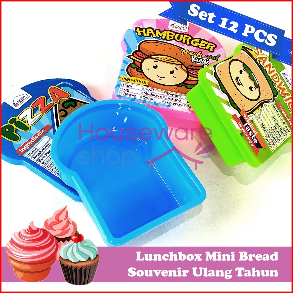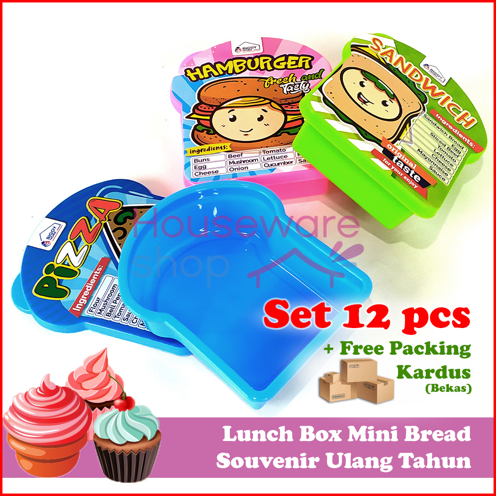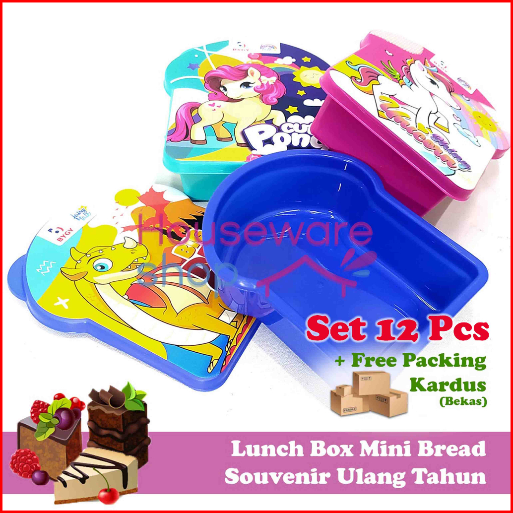Lusin Lunch Box Gambar Tempat Makan Souvenir Ulang Tahun - Mini Bread Isi 12 Pcs