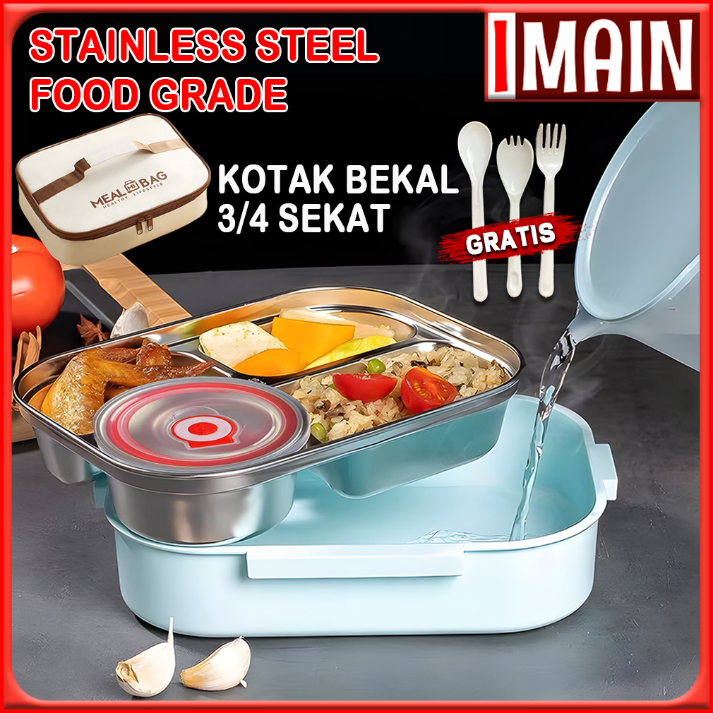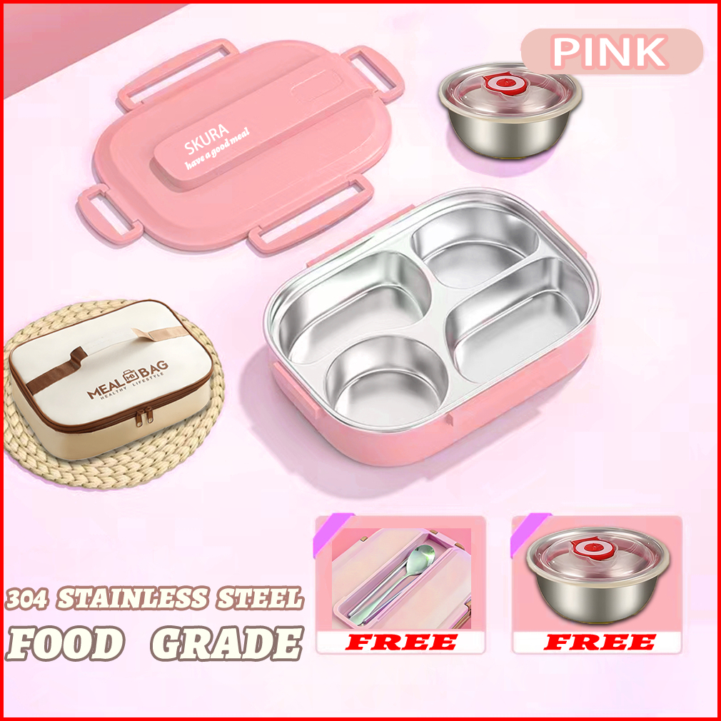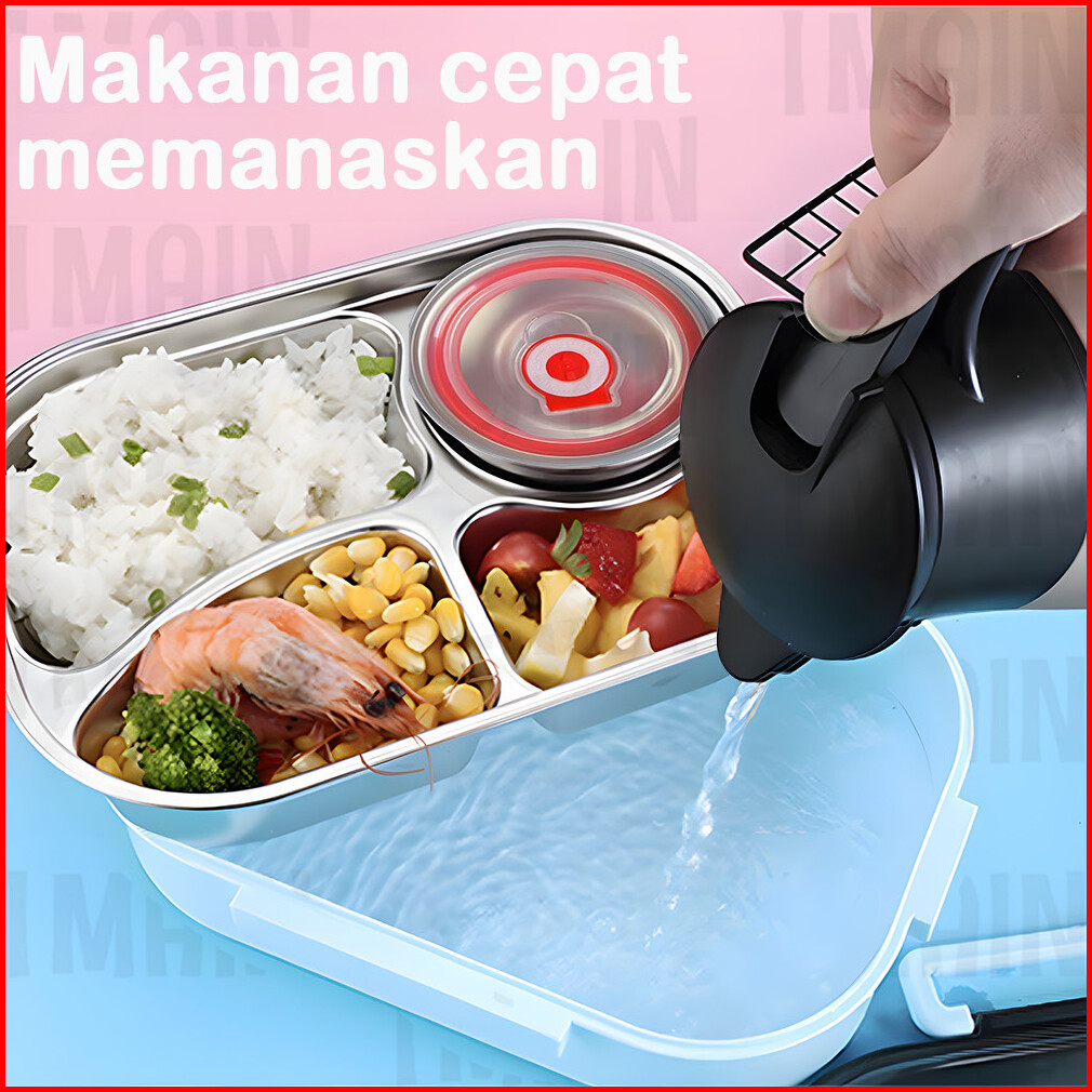 Kotak Makan Stainless Sekat 4 Lunch Box 4 Sekat Baja Tahan Karat Tempat Makan 4 Sekat 1500ml Lengkap Sendok Garpu