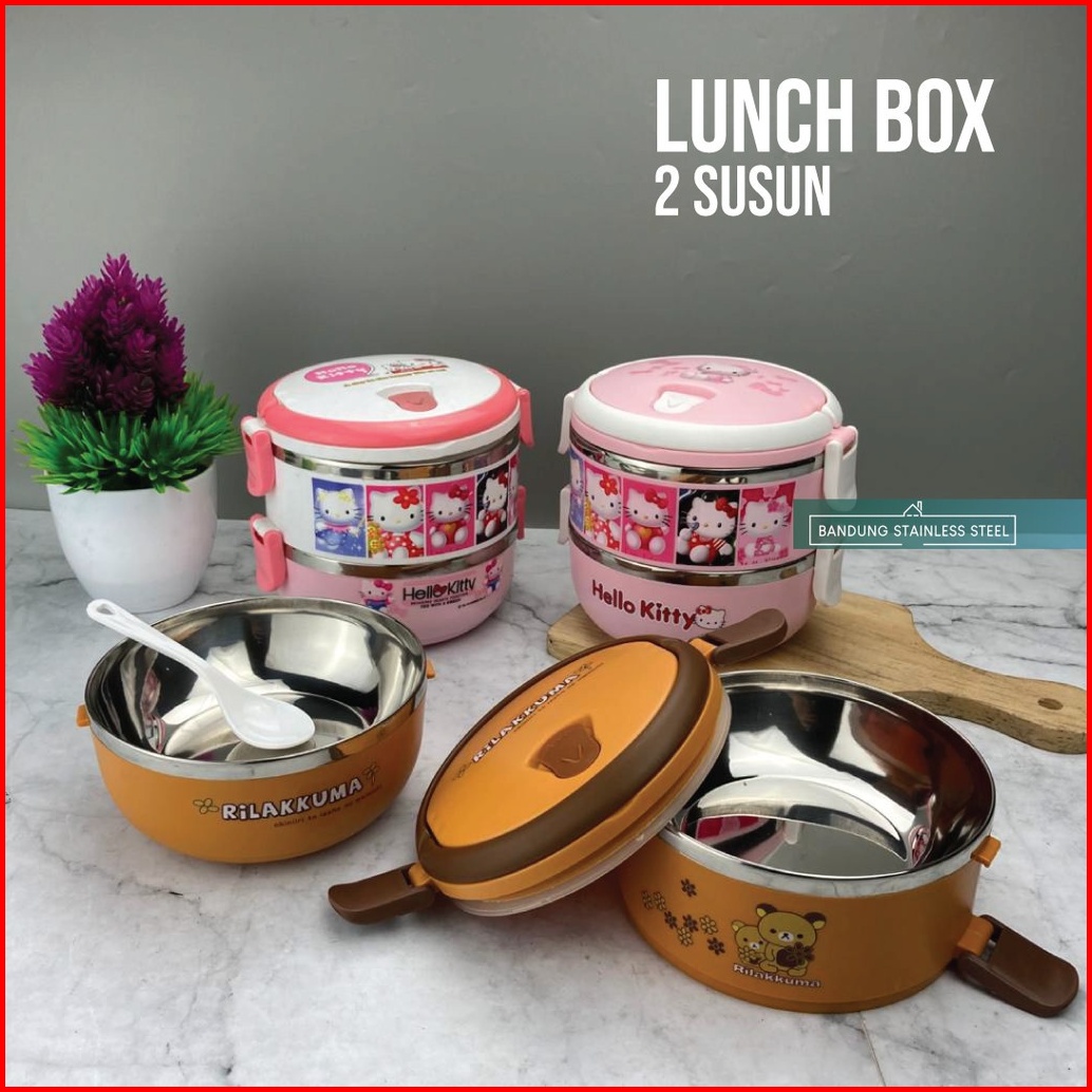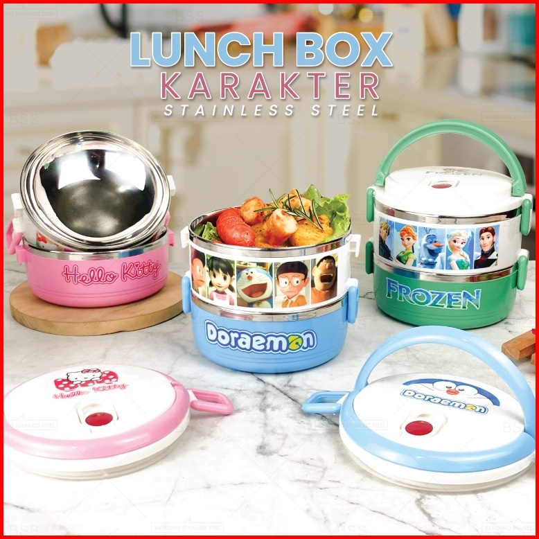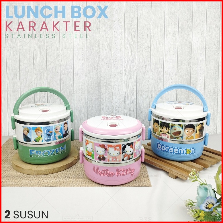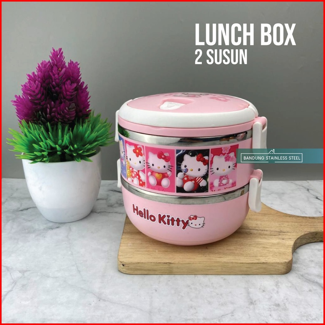 Lunch Box Rantang Lucu 2 Susun Stainless Gambar Karakter Hello Kitty Minion Doraemon