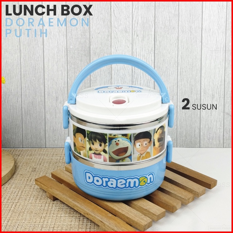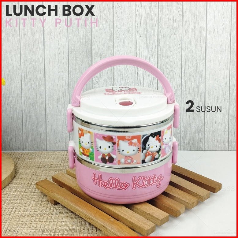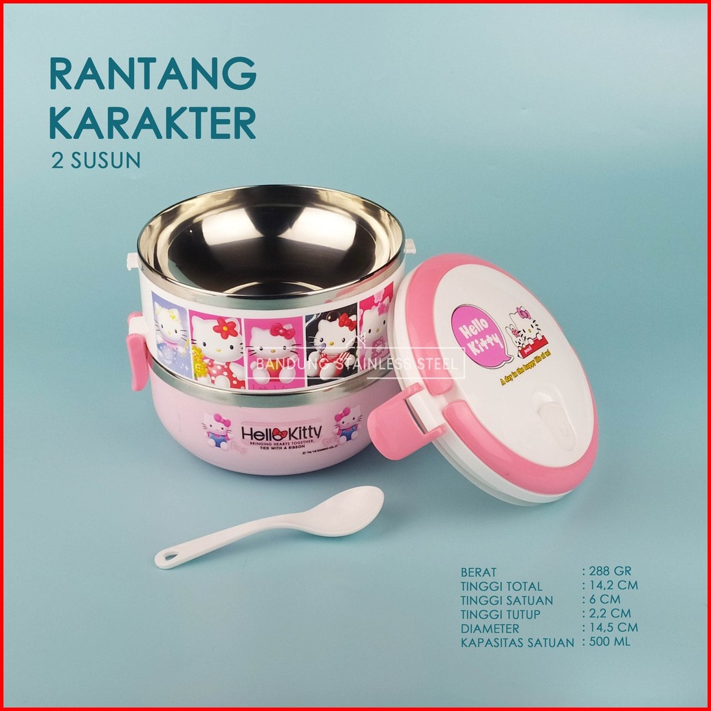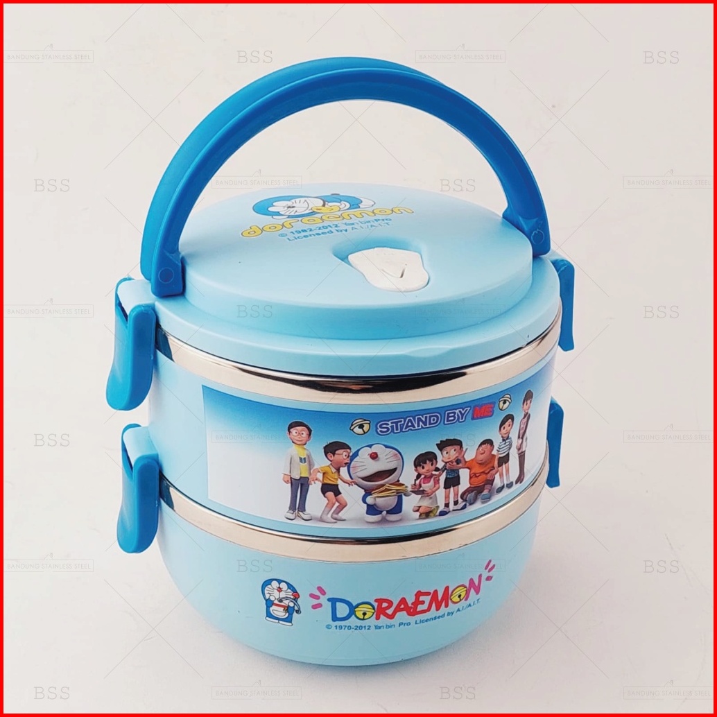 Lunch Box Rantang Lucu 2 Susun Stainless Gambar Karakter Hello Kitty Minion Doraemon