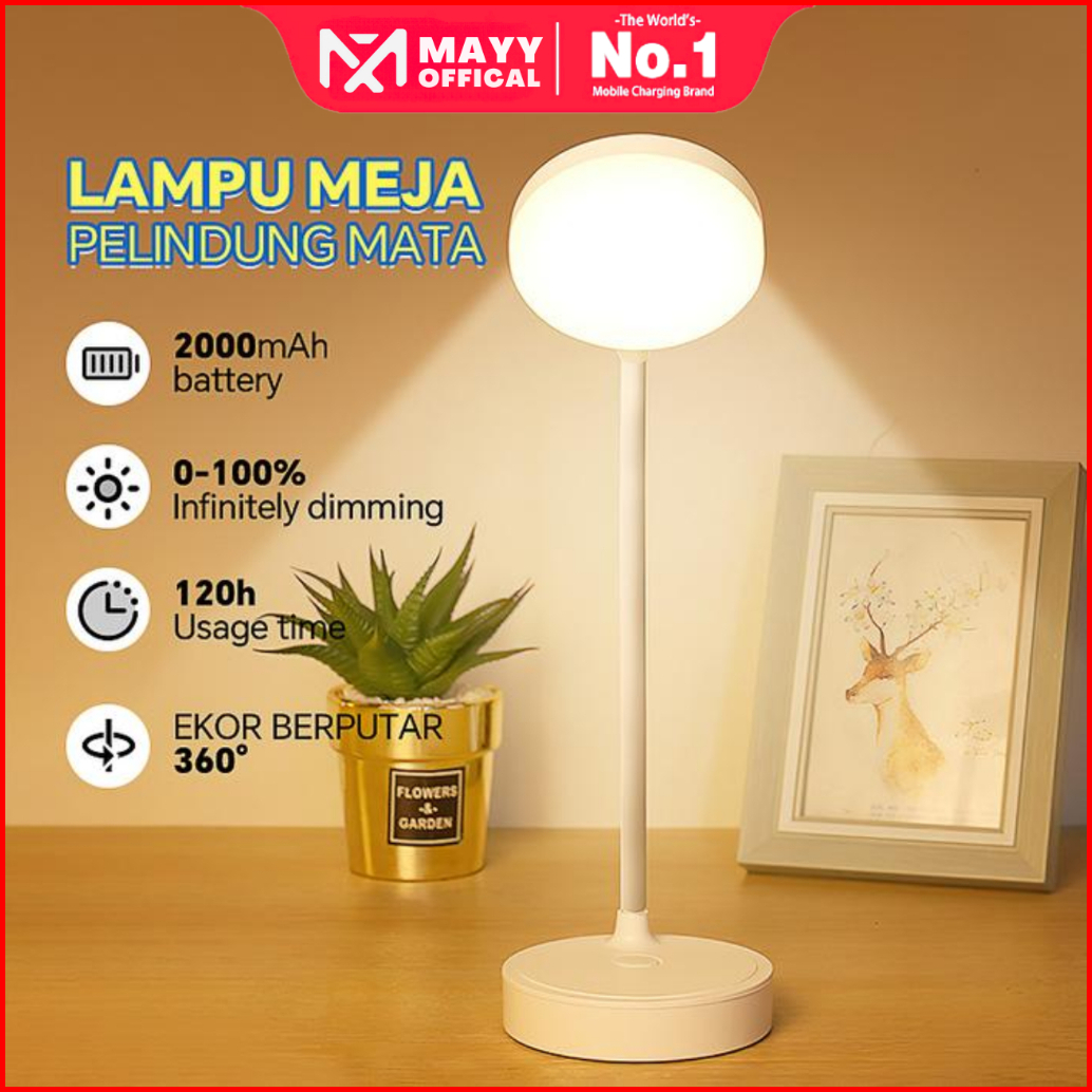 Mayy Id Lampu Belajar Tricolour Sentuh 3 Warna Tempat Pulpen Baca Meja Kerja Duduk 2000mah Lampu Tidur Wireless Lampu