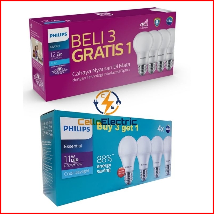 Led Pack Philips Mycare 5w 6w 7w 8w 9w 10w 11w 12w Led 3 Gratis 1 Led Essential Lampu Multipack Led Philips Paket 3 Free